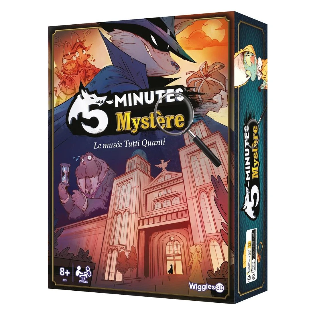 5 Minutes Mystère propose de jouer des parties très courtes et de les enchaîner à volonté. Identifiez les bons symboles sur les cartes Scène et reportez-les sur le Codex. Utilisez les indices obtenus pour éliminer des suspects. Mais attention, vous n’avez que 5 minutes ! Quelques instants avant que le Musée du Tout ne dévoile sa nouvelle exposition, l’inestimable MacGuffin, un criminel s’est faufilé et l’a volé ! C’est maintenant à vous, une équipe de détectives, de résoudre l’affaire, de trouver le coupable et de récupérer le MacGuffin manquant.