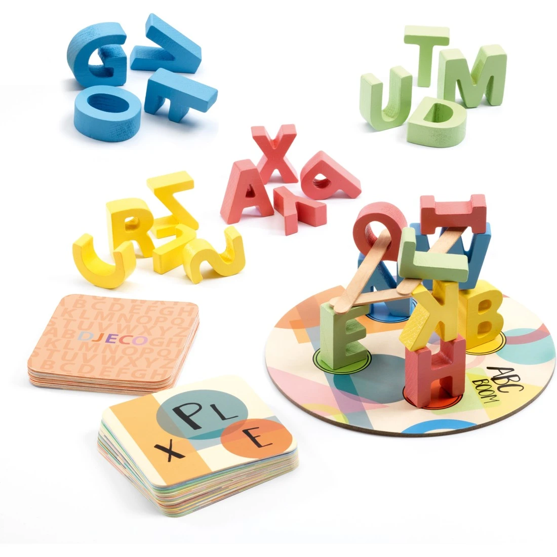 Abc Boom est un jeu de vocabulaire et d’adresse familial dans lequel il faut énoncer un mot qui commence par une lettre à poser en équilibre sans faire écrouler la structure.