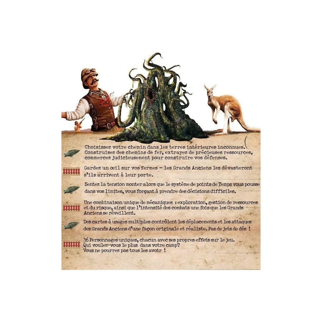 Mais ce n’est pas tout ce qui les attendait … Il y avait une raison à l’interdiction d’explorer cette partie du monde. À l’insu de tous, cachés à l’intérieur des terres, les Grands Anciens avaient établi des bases secrètes. Après leur défaite, les Grands Anciens survivants et quelques uns de leurs loyaux alliés humains firent route vers leurs places fortes des plaines arides, au-delà de la Cordillère Australienne. Alors que les colons se répandaient, les Grands Anciens commencèrent à s’agiter, déterminés à repousser ces envahisseurs agaçants vers la mer. Les terribles créatures engendrées par les Grands Anciens commencèrent à arpenter les terres, détruisant tous ceux qu’ils rencontraient, ravageant tout sur leur passage. Face à cette horreur, les nouveaux ‘Australiens’ mirent tous leurs espoirs dans l’un des avantages qu’ils possédaient: la puissance de la technologie militaire moderne, qui était tellement plus avancée qu’en 1888, la dernière fois que l’humanité fut appelée à faire face aux Grands Anciens.