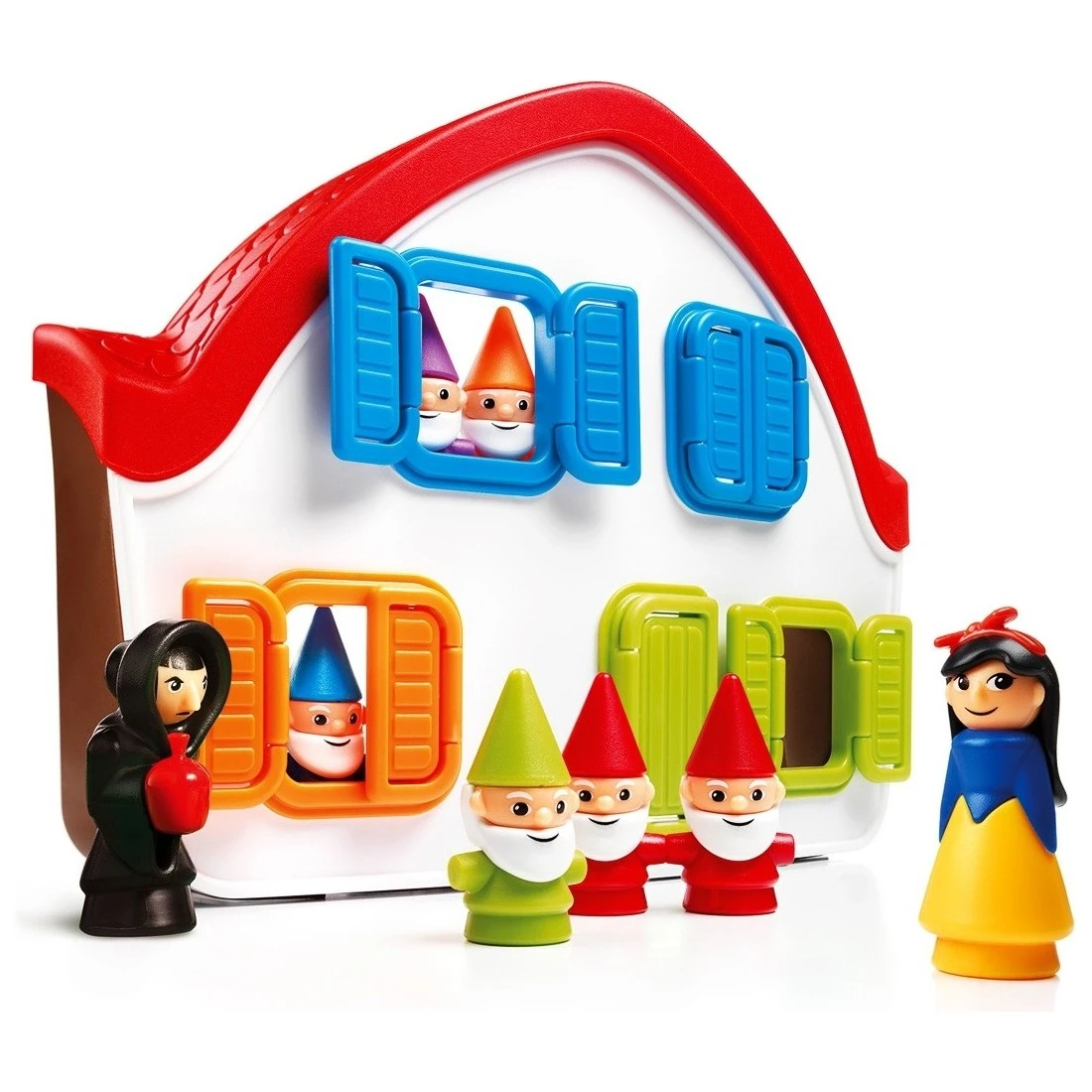 Contenu du jeu : 1 maison en 3D, 7 nains, Blanche-Neige, la méchante reine, 1 livret de 48 défis et 1 bande dessinée.