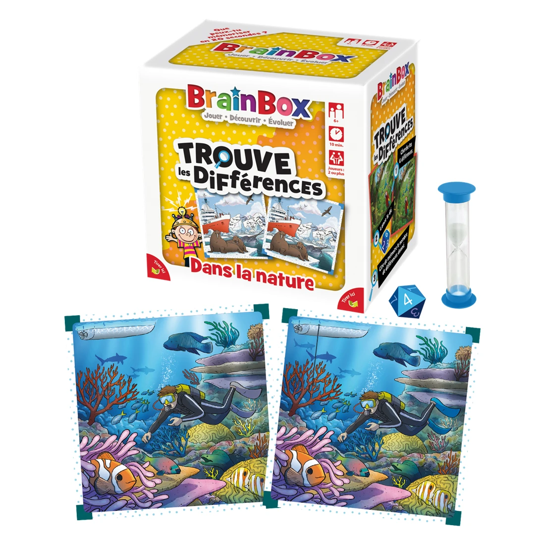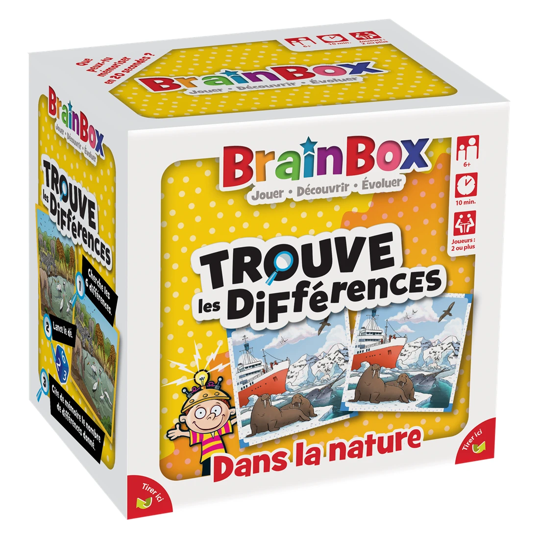 C’est en améliorant le célèbre jeu des différences que BrainBox a créé cette nouvelle gamme. Le principe permet de travailler autant sa mémoire que son sens de l’observation, sans oublier le fun et le plaisir du jeu. Un principe simple et des parties rapides, pour entraîner le sens de l’observation et la mémoire, le tout autour d’illustrations enfantines adorables, c’est BrainBox – le jeu des différences !