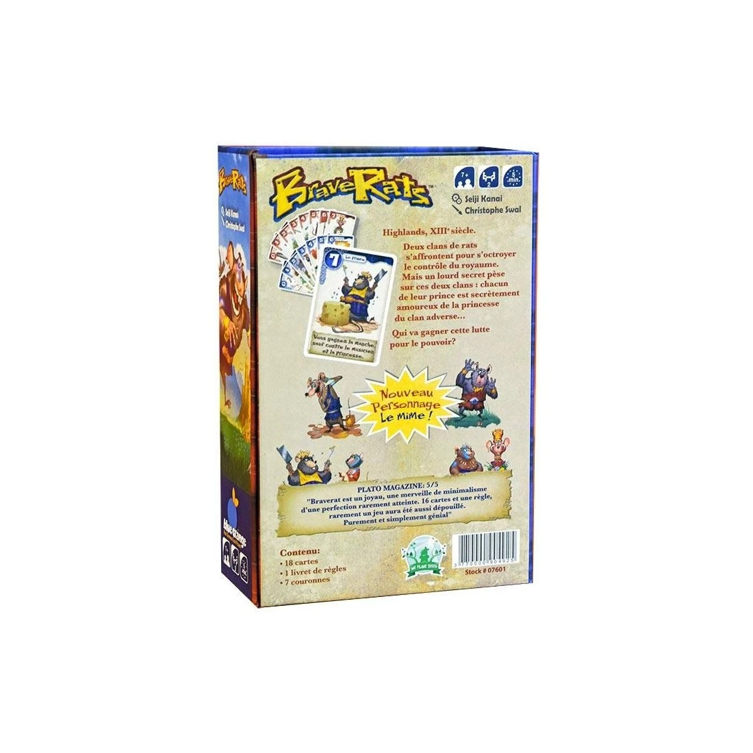 BraveRats est un jeu minimaliste de l’auteur de Love Letter pour deux joueurs. Chaque joueur a 8 cartes en main (numérotées de 0 à 7 et avec un pouvoir spécial). Chacun en choisit une, la pose et c’est la plus haute qui l’emporte. Le premier joueur a avoir gagné 4 rounds est le vainqueur. Et les pouvoirs spéciaux vont grandement influencer la partie !