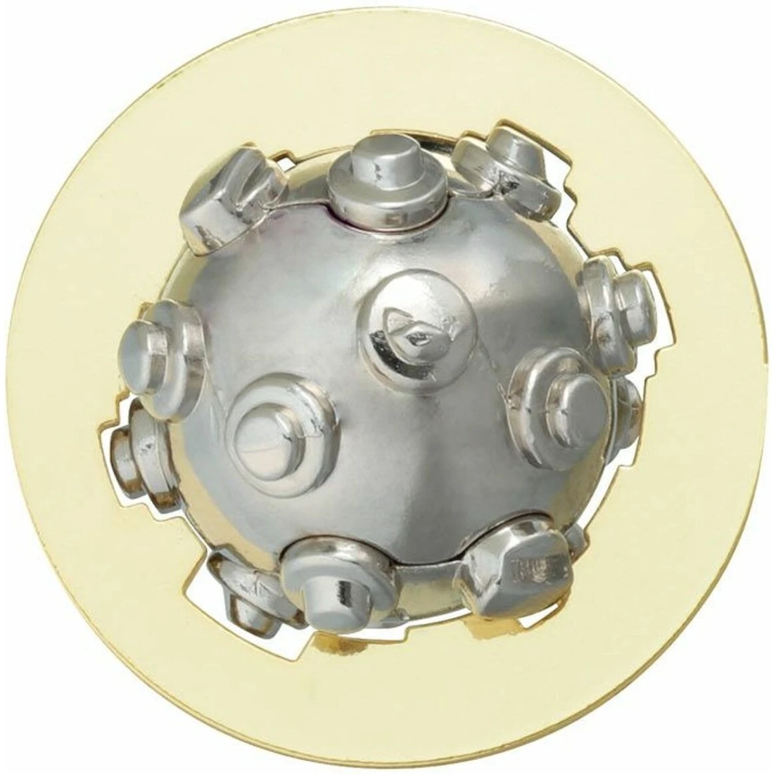 Casse-tête à démonter et remonter.Composé d’une boule avec des parties saillantes entourée d’un anneau. Pour résoudre ce casse-tête, il faut tourner la sphère.