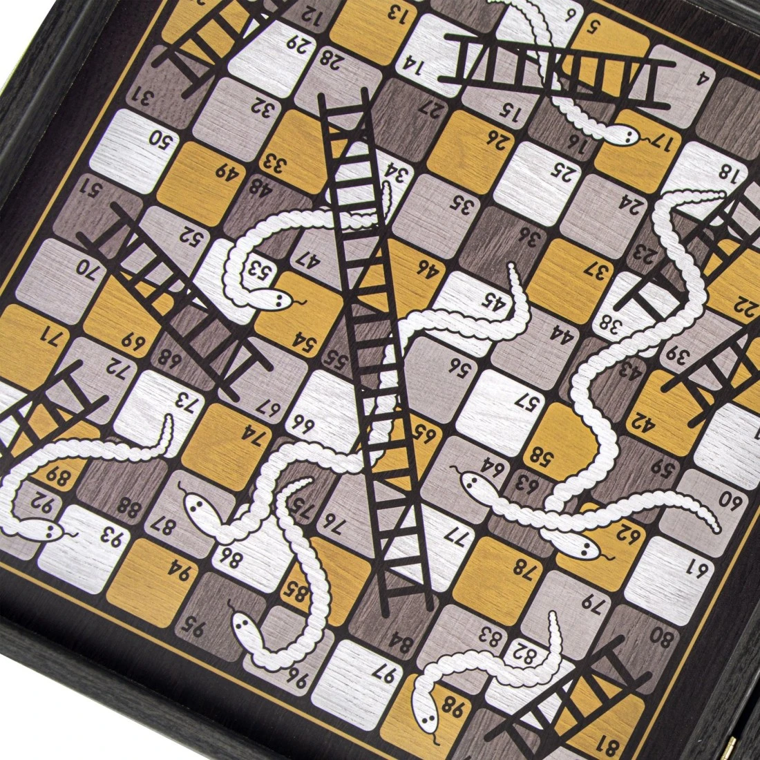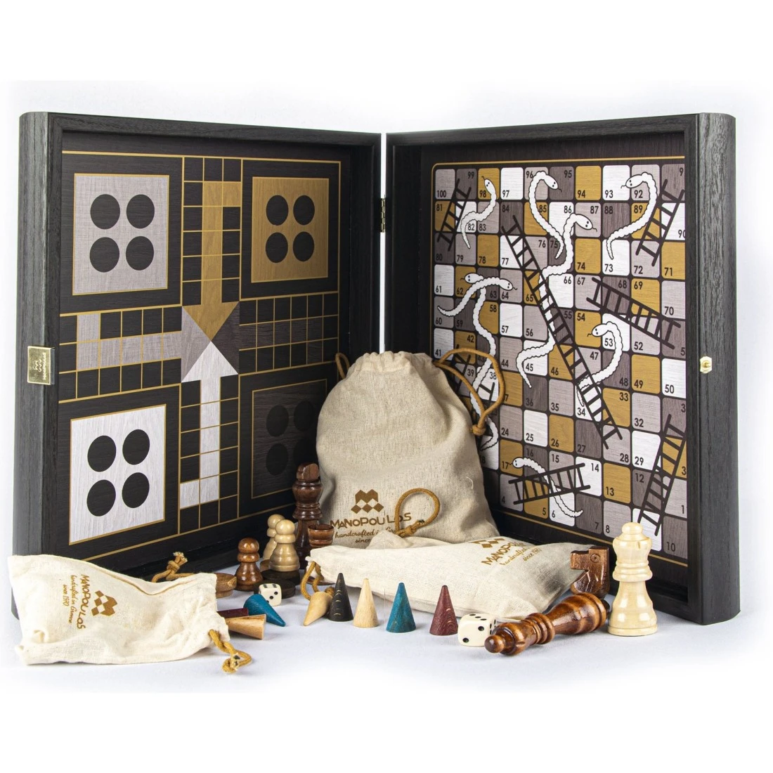 Avec ce coffret combo 4 en 1 contenant un jeu d’Echecs, de Backgammon, de Serpent et de Petits Chevaux, passez d’agréables moments en famille et entre amis.