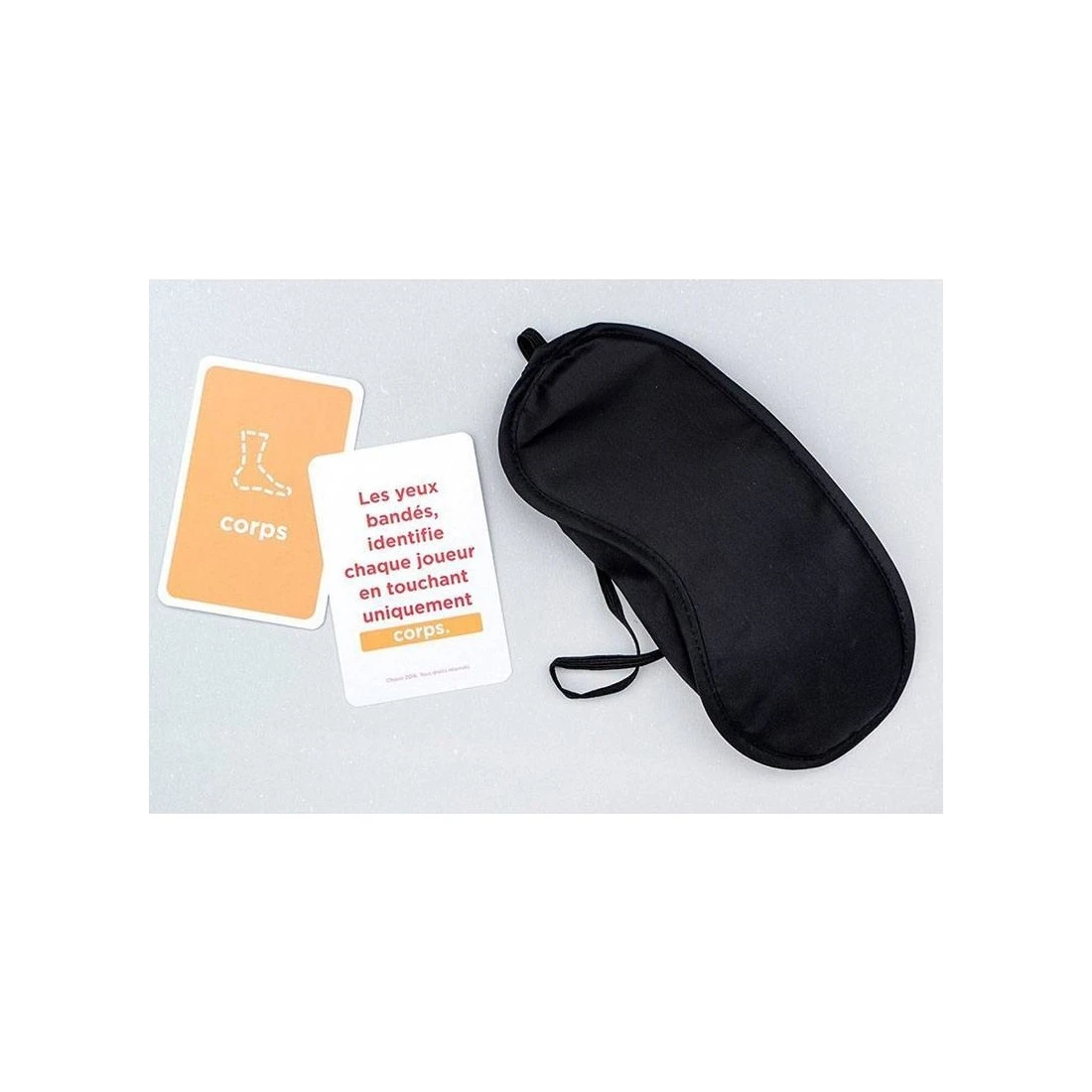 Contenu du jeu : 110 cartes de jeu, soit des milliers de possibilités pour des situations hilarantes…, 1 masque pour des gages qui mettront vos sens à l’épreuve, 1 roue pour désigner l’heureux élu ou pas !, règles du jeu.