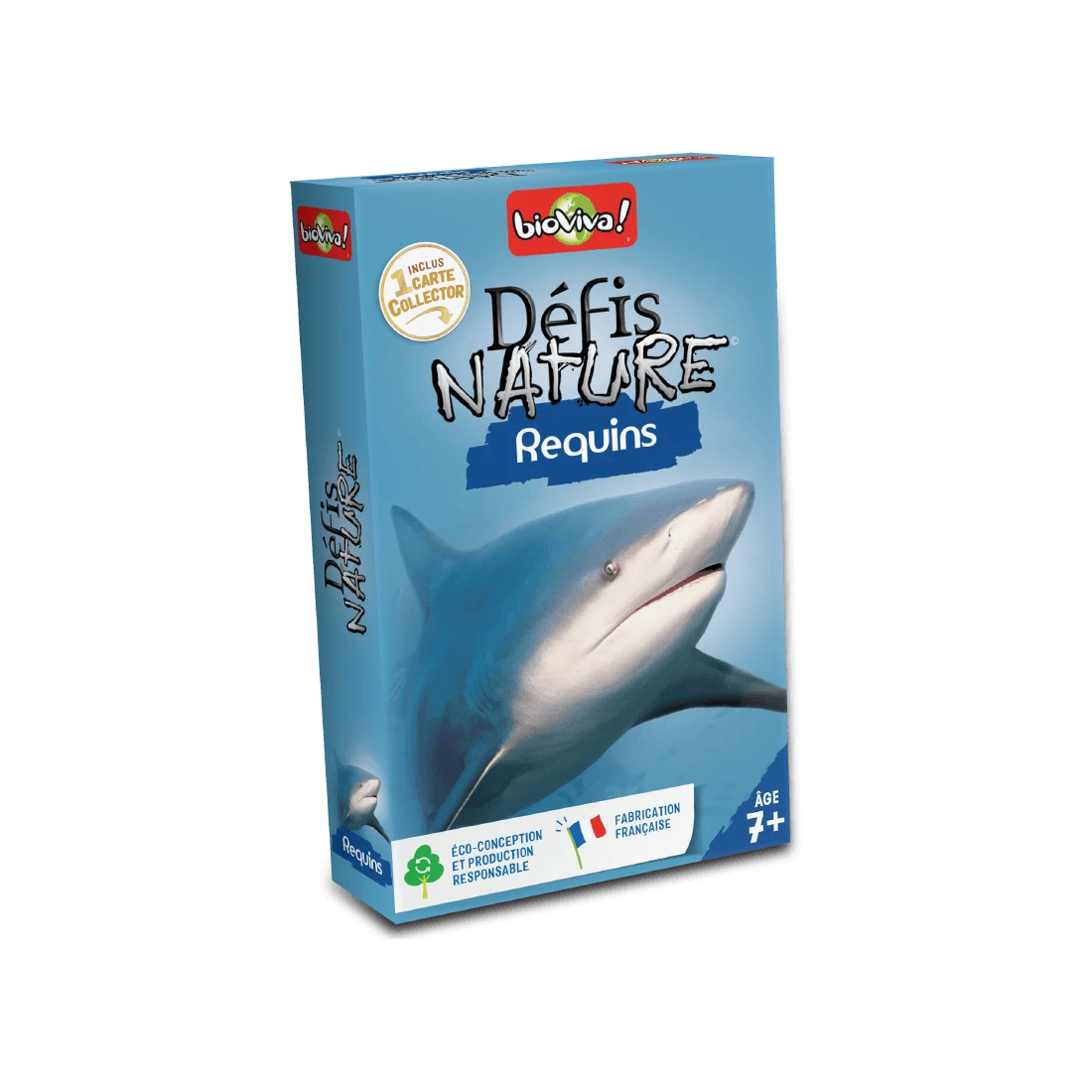 Défis Nature vous emmène à la rencontre des requins les plus étonnants de notre planète. Découvrez les espèces à préserver, puis pariez sur les points forts de vos squales pour collecter toutes les cartes du jeu et remporter la partie. Alors, prêts à relever le défi ?
