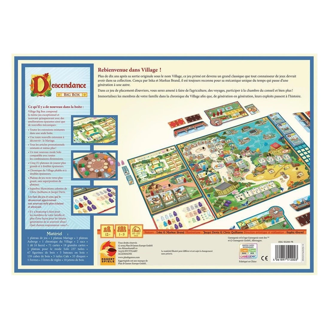 Avec Descendance, il vous faudra jouer avec le destin, accepter de voir partir les plus anciens et peut-être vous réjouir de les voir nommés aux archives municipales : de quoi garantir la renommée de votre famille. Le jeu se joue en plusieurs manches durant lesquelles vous contrôlez le destin des membres de votre famille en les plaçant judicieusement dans le village.À la Ferme, ils vous assurent une bonne récolte, à l’église ils vous génèrent des points de prestige, et à la Chambre du Conseil ils vous rapportent des points de prestige et des privilèges.