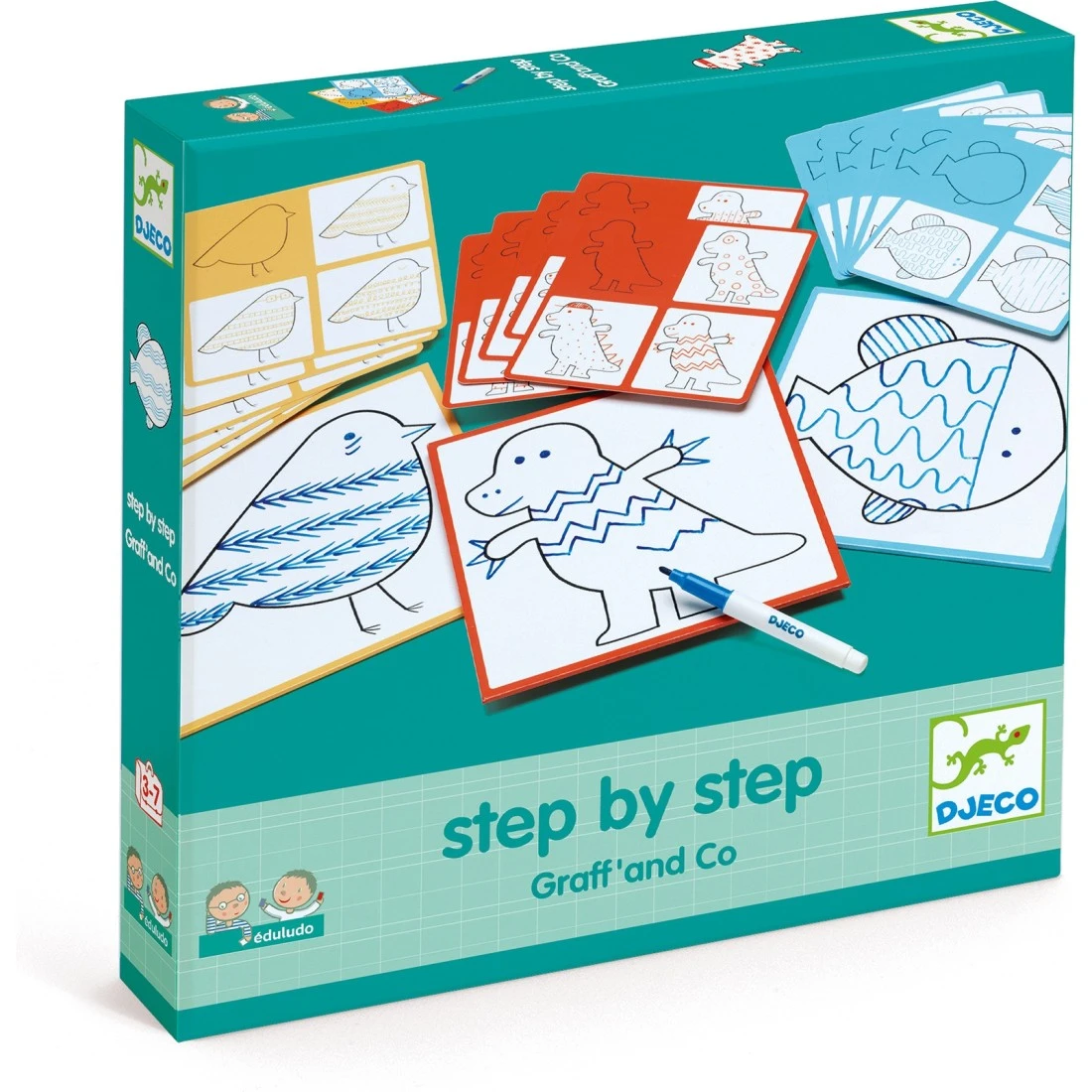Step by step Graff’ and Co accompagne les enfants dans la découverte, l’apprentissage et la pratique du dessin de manière ludique. Dès 3 ans.