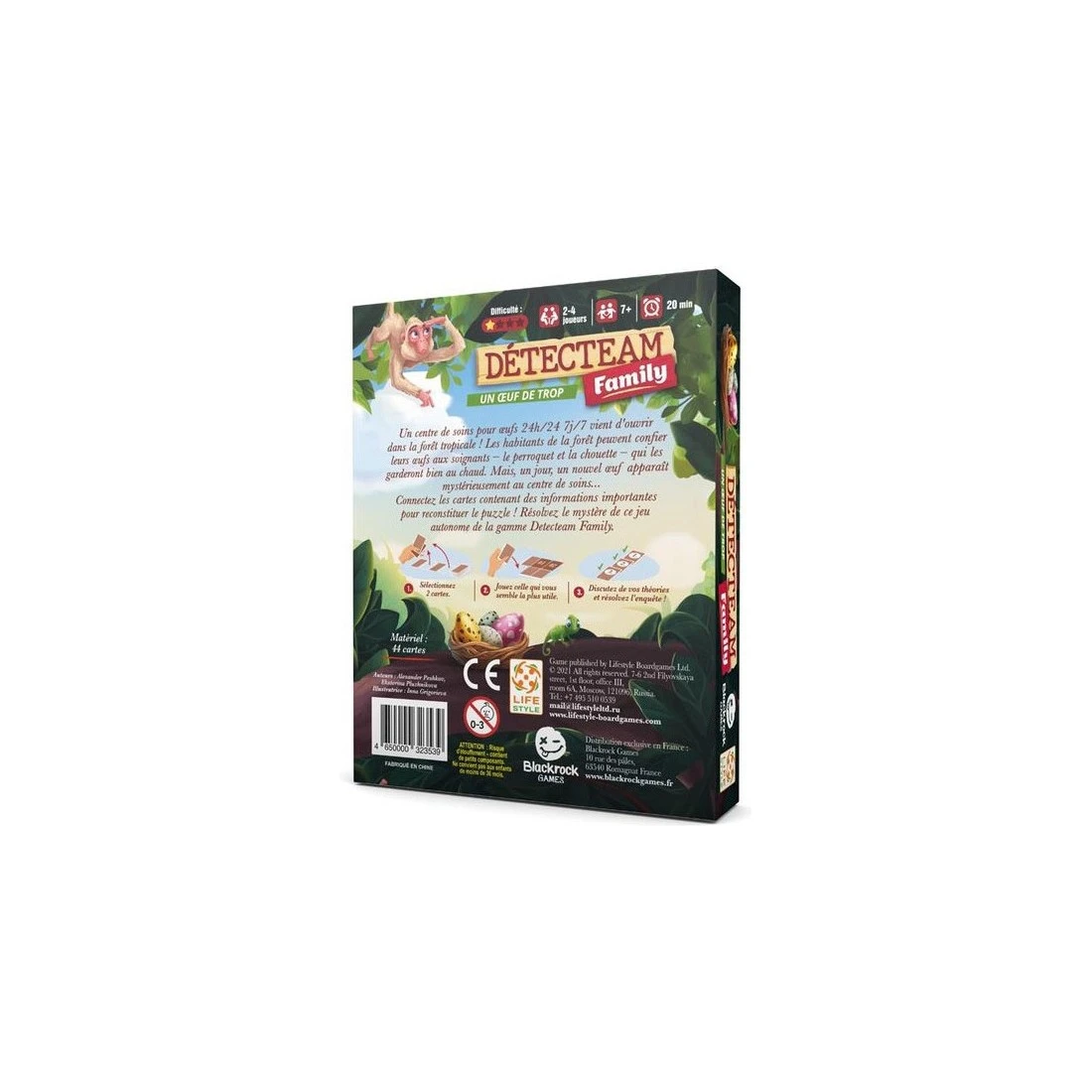 Résolvez le mystère de ce jeu appartenant à la gamme Detecteam Family, une aventure coopérative pour toute la famille. Un centre de soins pour œufs 24h/24 7j/7 vient d’ouvrir dans la forêt tropicale ! Les habitants de la forêt peuvent confier leur œufs aux soignants. Mais, un jour, un nouvel œuf apparaît mystérieusement au centre de soins….