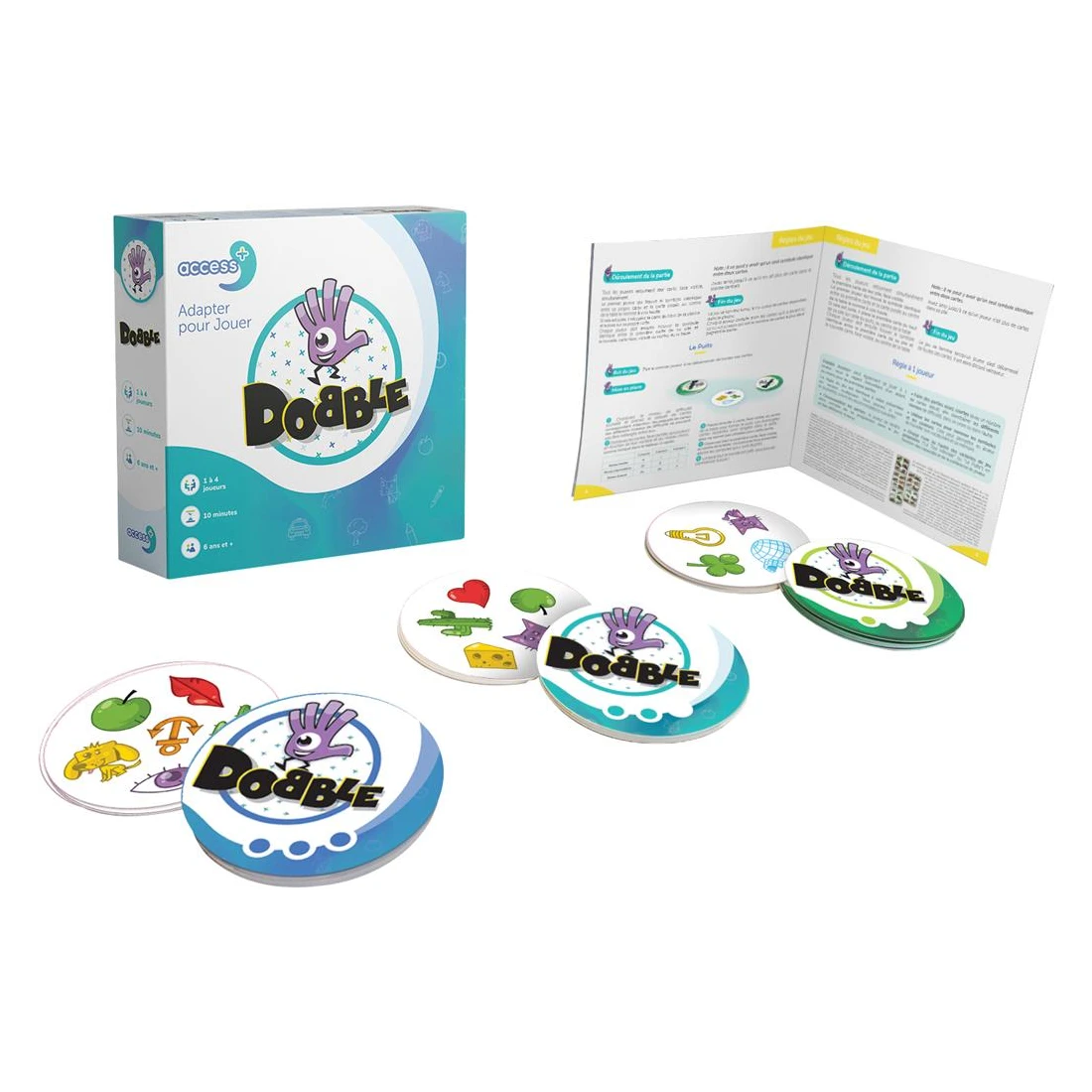 Dobble Access+ reste fidèle à la version originale du jeu : le joueur doit repérer le symbole identique sur sa carte et sur celle de la pioche. Cela permet de jouer avec ses proches et que chacun y prenne du plaisir.