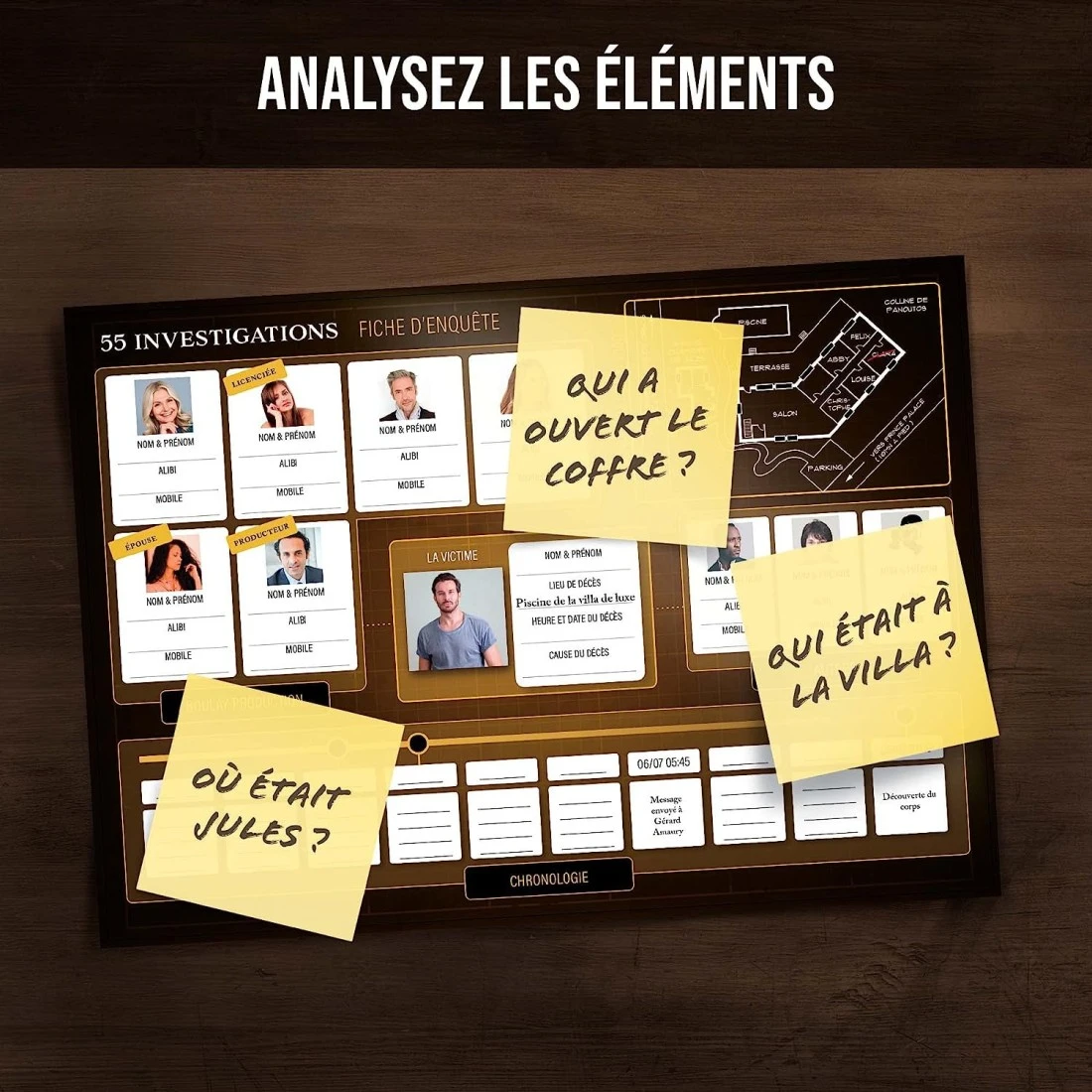 Armez-vous de votre carnet d’enquêteur, de votre esprit aiguisé et plongez dans l’univers glamour mais trompeur de la célébrité. Interrogez les suspects, comparez leurs alibis, fouillez les chambres, et surtout, faites attention aux détails. Dans ce monde où les apparences sont tout, les vérités sont souvent masquées derrière des sourires forcés et des poignées de main feintes.