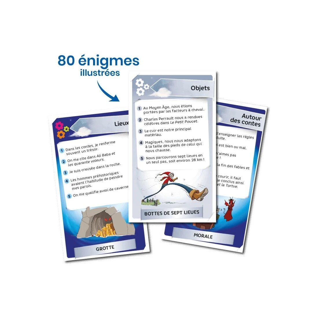 Enigmes – Comptes et légendes c’est :✓80 mots à deviner !✓5 indices par carte !✓Un plateau de jeu !✓Un jeu idéal pour jouer en voyage grâce à une version adaptée de la règle du jeu !