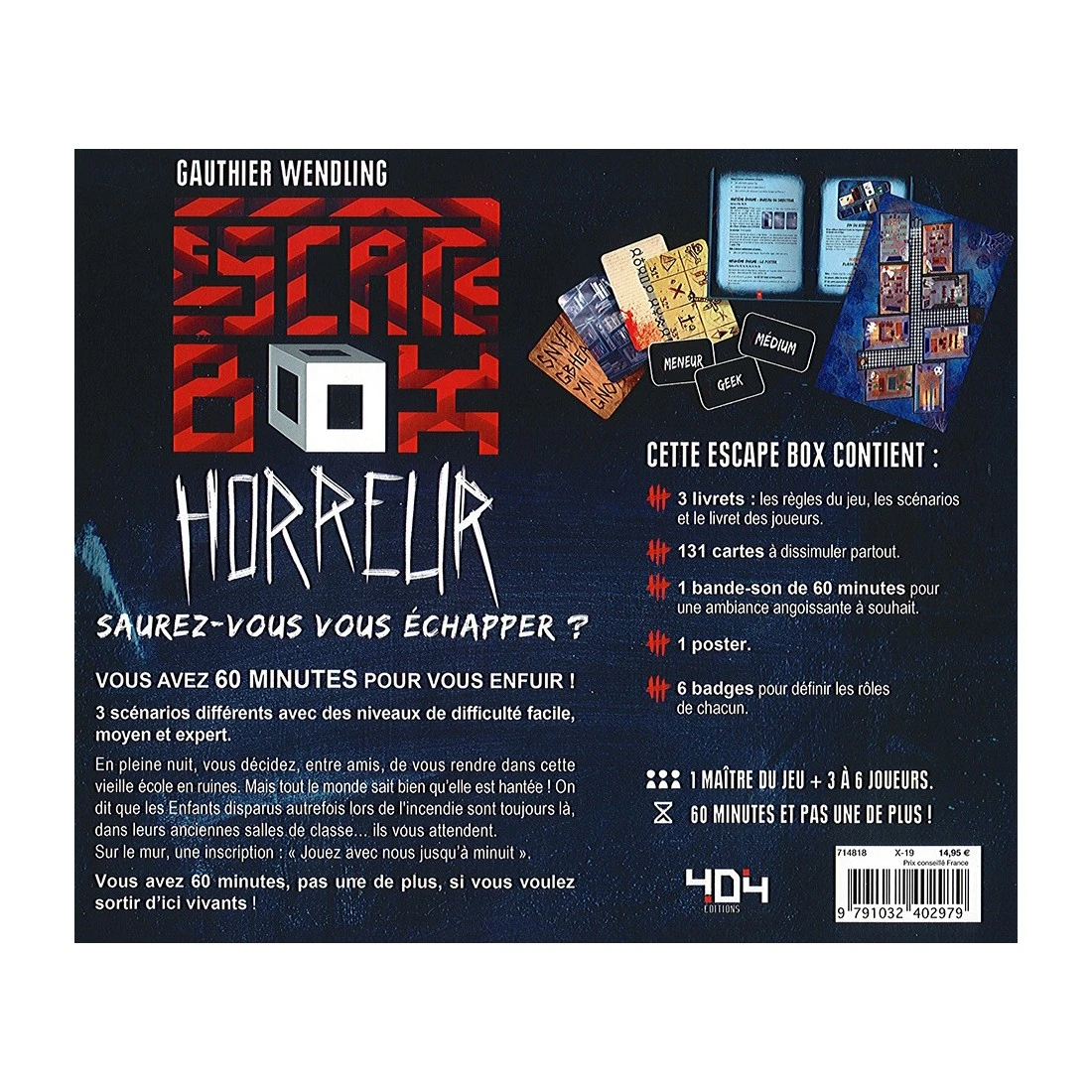 Découvrez l’Escape Box Horreur de 404 Editions, un jeu d’Escape Game pour 3 à 6 joueurs à partir de 14 ans.