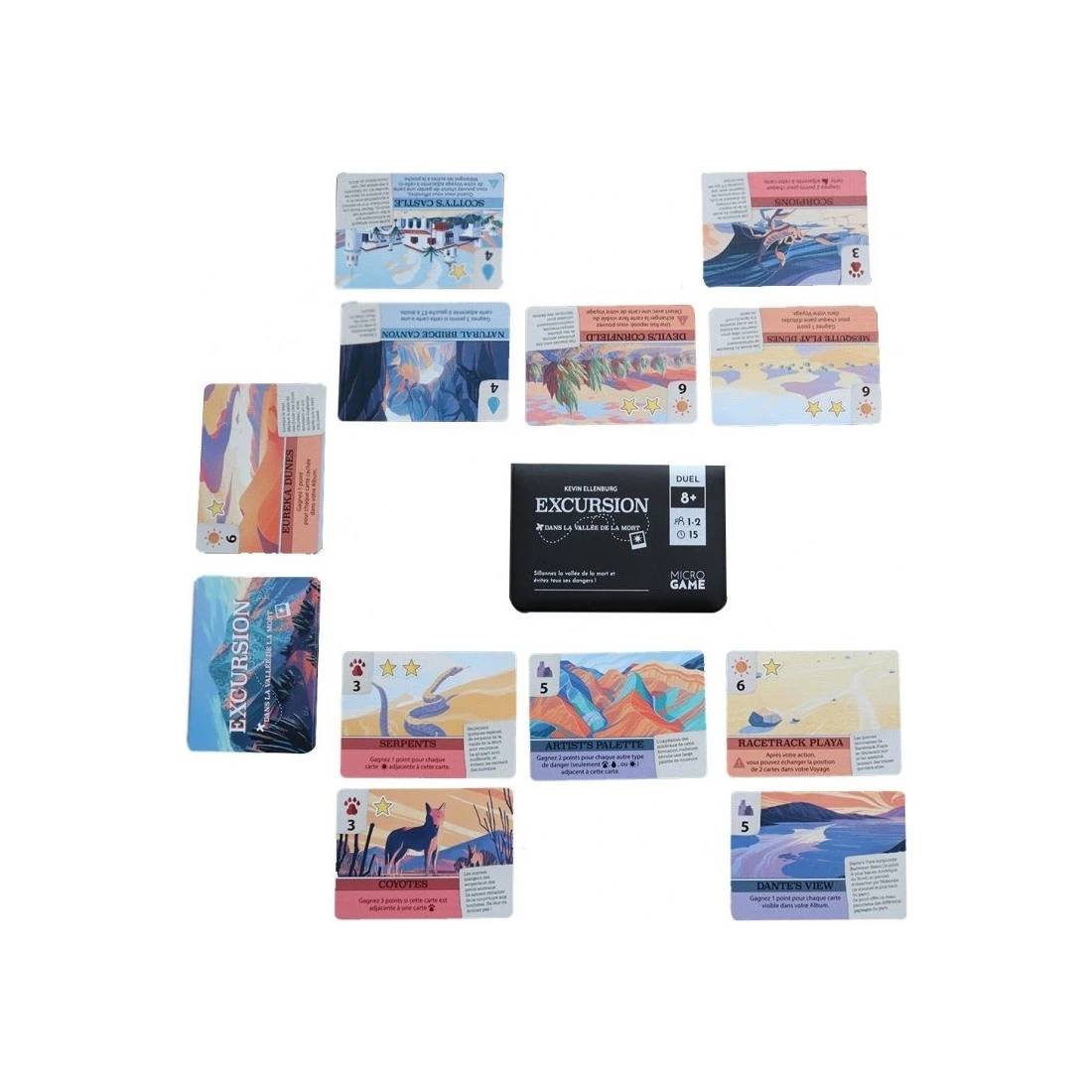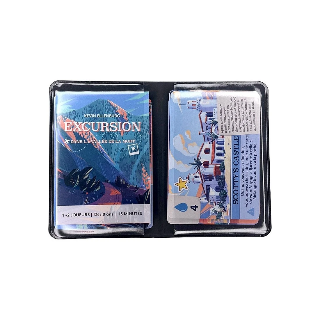 Excursion dans la Vallée de la Mort est un jeu de construction de tableaux au format de poche pour 1 à 2 joueurs, chaque voyageur s’efforçant d’assembler le meilleur mélange de cartes dans son voyage et son album afin de gagner la partie.