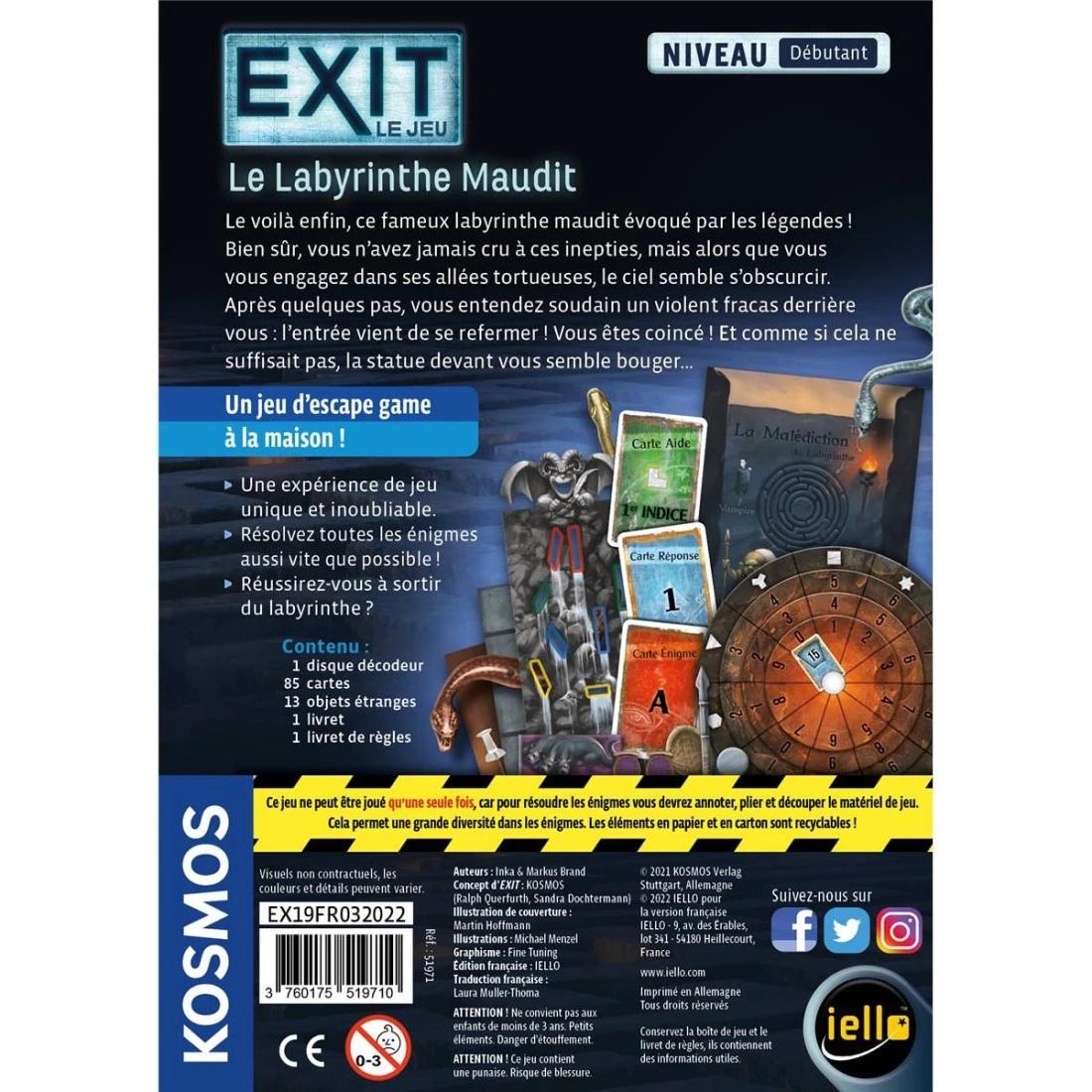 Exit est un jeu qui reprend les sensations des « escape games ». Muni d’indices, de matériel et d’un décodeur, vous aurez pour mission de sortir du jeu le plus rapidement possible. Plus qu’un jeu : une expérience unique et immersive dans laquelle vous devrez faire preuve de coopération, d’observation et de logique.