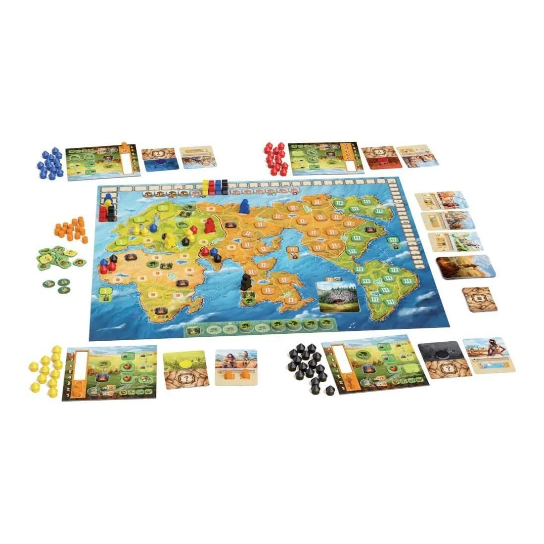 Menez votre tribu préhistorique au fil des âges, depuis le berceau africain de l’humanité jusqu’aux confins du vaste monde. Emmenez vos chasseurs-cueilleurs à la découverte des territoires qui les entourent pour qu’ils y établissent leurs villages et développent leurs compétences. Grâce à la mise en place aléatoire et à une mystérieuse grotte qui recèle bien des surprises, chaque partie offre une expérience de jeu différente ; à vous de vous adapter, et de trouver les ressources nécessaires pour faire prospérer votre tribu à l’âge de pierre !