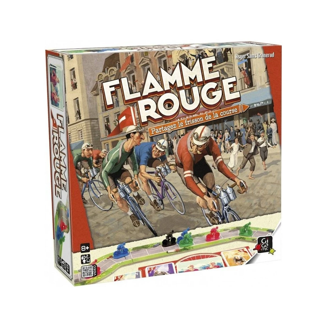 Flamme Rouge est un jeu de course rapide et tactique où chaque joueur contrôle une équipe de deux coureurs : un rouleur et un sprinteur.