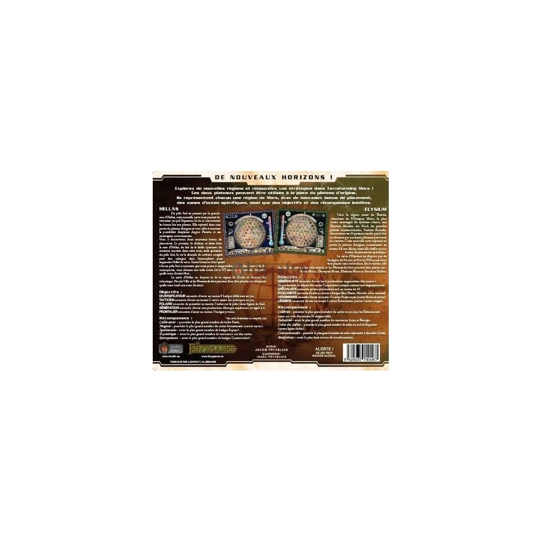 Terraforming Mars : Hellas & Elysium, la première extension de Terraforming Mars, est un nouveau plateau avec 2 côtés qui représentent 2 nouveaux territoires de la planète Mars.