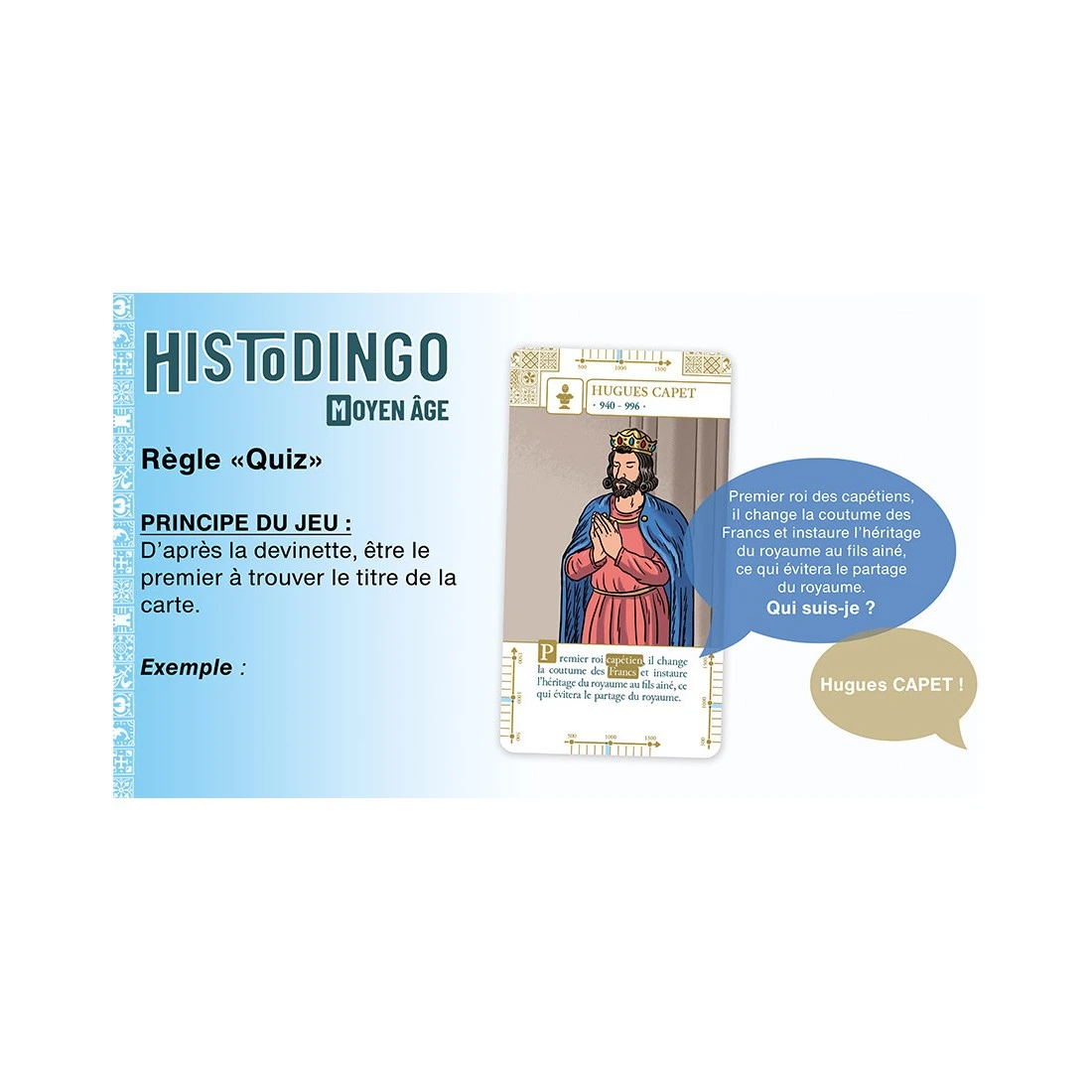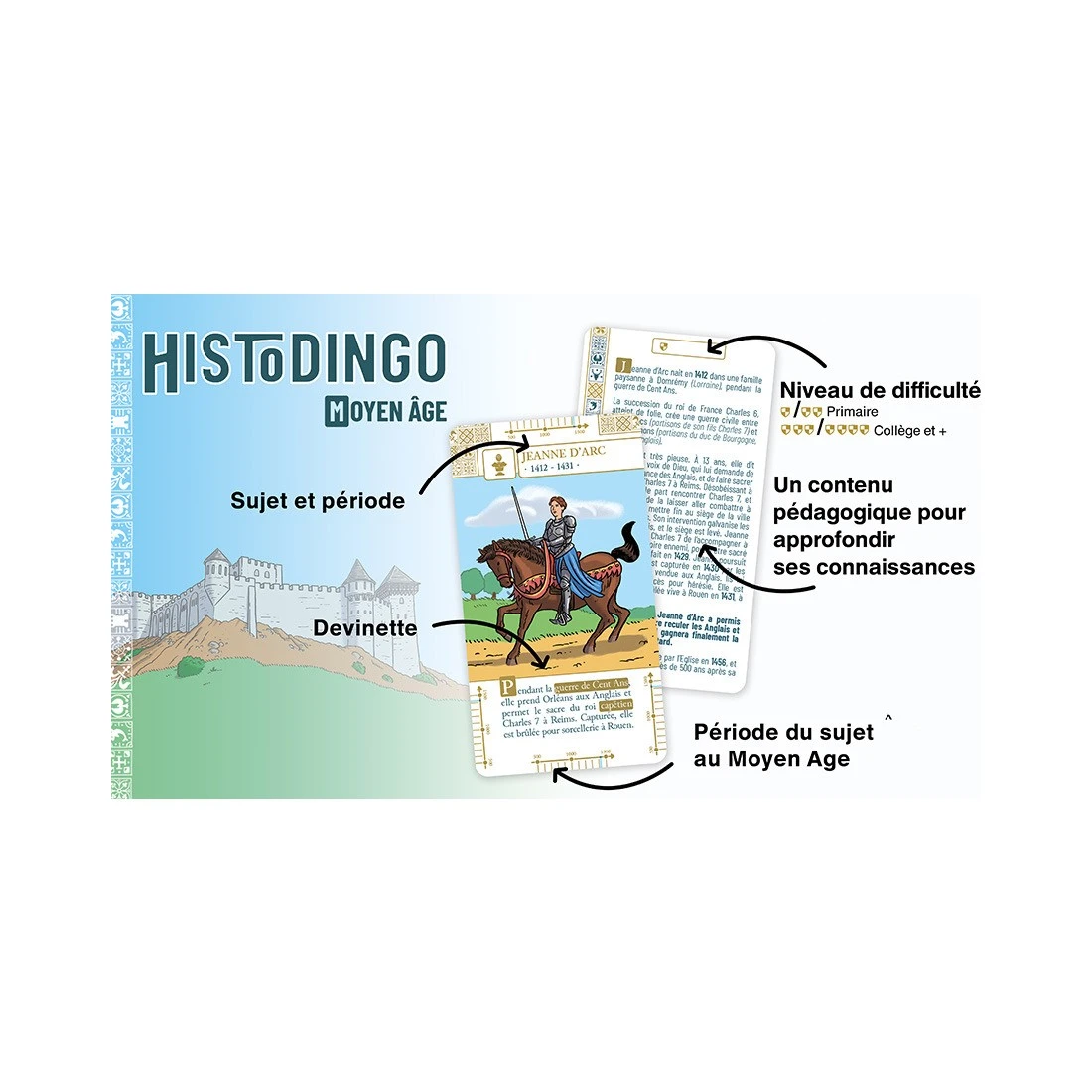 Grâce à Histodingo Moyen-âge, petits et grands peuvent prendre gout à l’Histoire, construire les premiers grands repères dans l’histoire de la France et de l’Europe et découvrir l’époque médiévale sous plusieurs aspects (culturel, humain, militaire, pouvoir politique) totu en situant un fait sur une frise chronologique et dans un contexte historique.