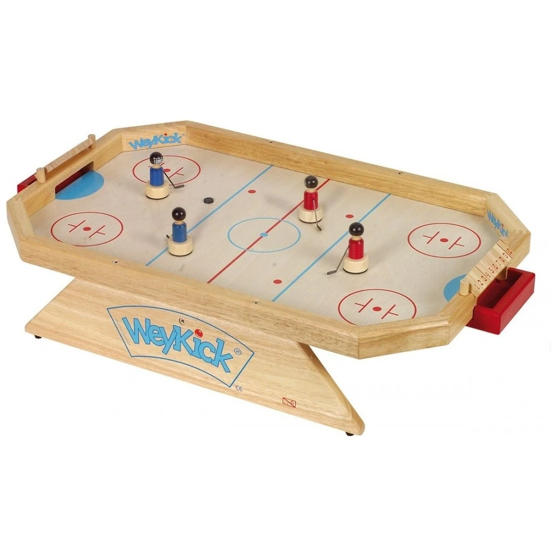 Weykick Hockey est un jeu très original. Les joueurs de hockey sont aimantés pour donner l’illusion que les joueurs bougent tout seuls. 2 à 4 joueurs.