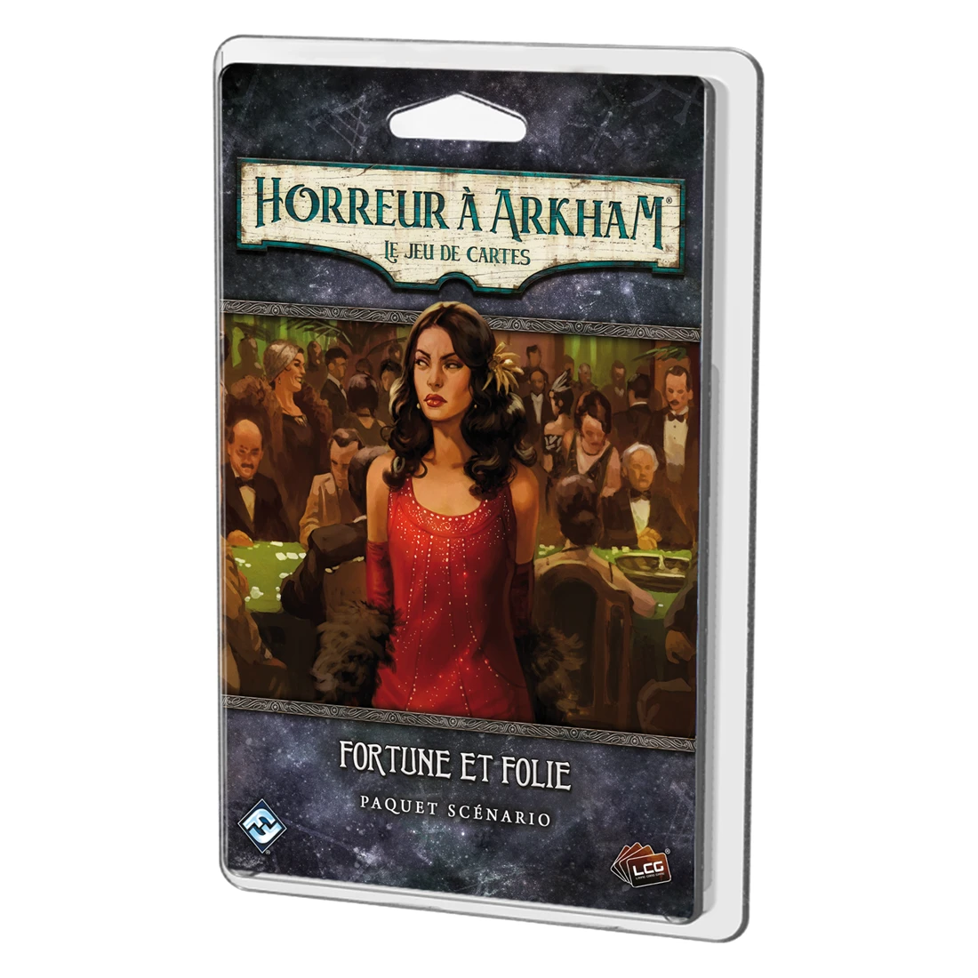 Dans Fortune et Folie, un à quatre enquêteurs planifient et exécutent un audacieux cambriolage de casino. Leur cible : le puits de la fortune, une mystérieuse relique qui permet au casino de mettre toutes les chances de son côté (littéralement). En tant que scénario, Fortune et Folie peut être joué seul ou inséré dans une campagne en tant qu’histoire secondaire. Il présente même quelques caractéristiques supplémentaires s’il est utilisé comme scénario secondaire dans la campagne Les Clés écarlates ! Les joueurs n’ont besoin que d’un exemplaire du jeu Horreur à Arkham – Le jeu de Cartes pour se plonger dans le scénario. Testez votre chance et voyez si la fortune vous sourit !