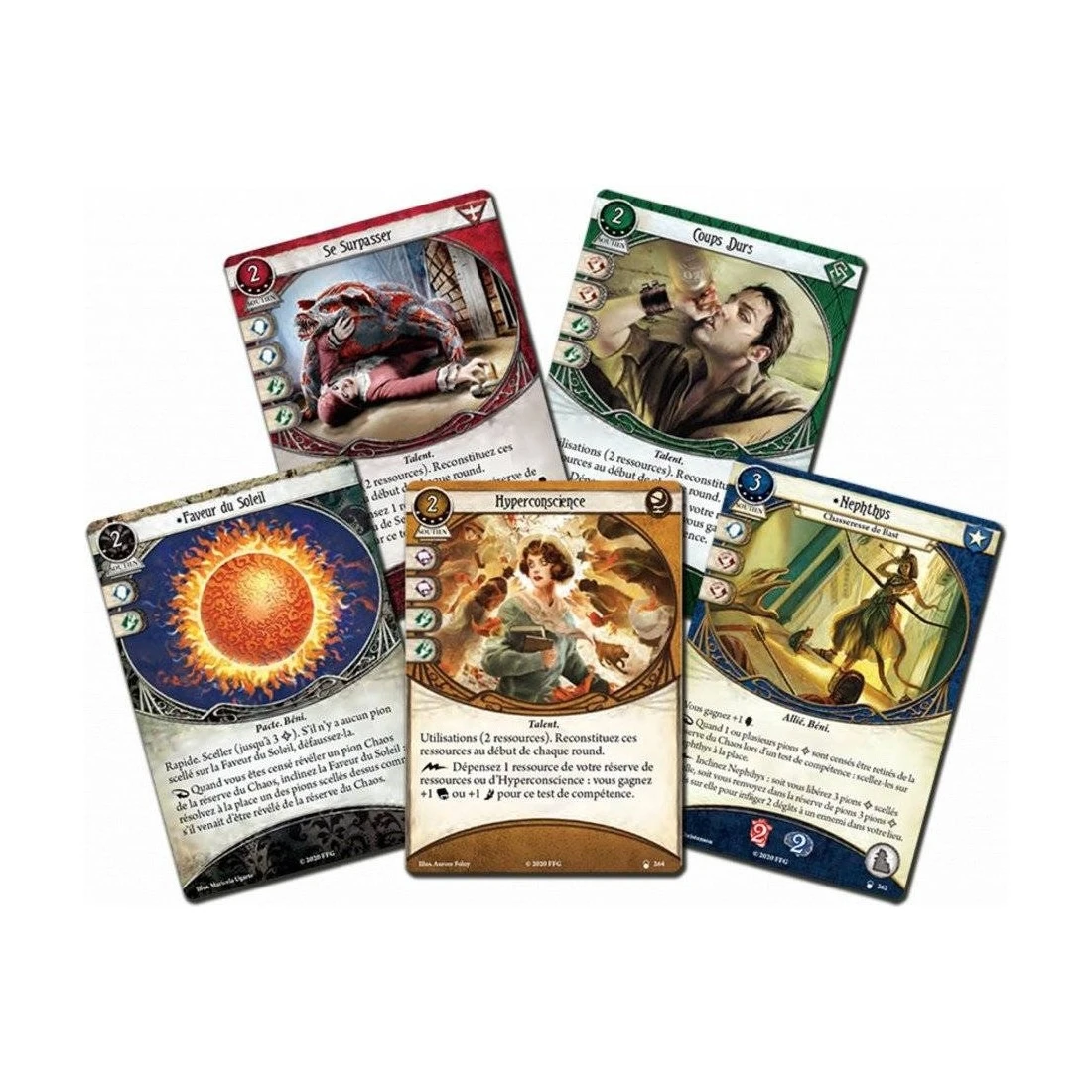 Vous aurez besoin de nouveaux outils et compétences si vous envisagez d’attaquer de front l’Ordre de Dagon, et heureusement, ce paquet est rempli d’un assortiment de nouvelles cartes Joueur pour chaque aspect, vous donnant les armes pour améliorer votre deck quand vous gagnez d’expérience et vous rapprochez de la fin de votre campagne.