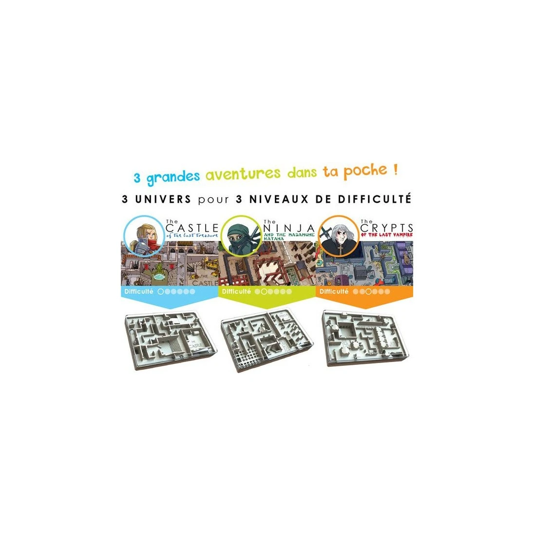 A Plusieurs : lance un défi à un ou plusieurs amis et jette-toi à corps perdu dans une Bataille, un Raid ou une Traque, pour les devancer tous et remporter le titre de ‘Champion.ne’, de ‘Kamikaze’ ou de ‘Killer’. Tente ta chance ! A la loyale ou pas, en empruntant des raccourcis et le passage secret. Tous les coups sont permis.Chaque joueur libère sa bille . Lance le jeu en criant “Bataille !” . Tout joueur qui atteint la salle finale crie “Graal !” quand il arrive au trésor ou “Hippon !” quand il touche le Katana ou “Va En Enfer ! ” quand il atteint la dernière crypte (tout le monde arrête de jouer à ce moment), et montre aux autres que la bille est bien dans la salle, puis il redonne le top départ à sa convenance . Le premier qui atteint le point de départ crie “Champion !”, “Kamikaze !” ou “Killer !”. Car il l’est devenu, pour ce combat en tout cas. A plusieurs, si vous êtes nombreux, défiez-vous en Tournois. Battez-vous deux par deux (tirage au sort). Mêmes règles que pour la Bataille. Les gagnants recommencent entre eux, toujours deux par deux. Jusqu’à ce qu’il n’en reste plus que deux, qui s’affronteront pour le titre de Great Champion.