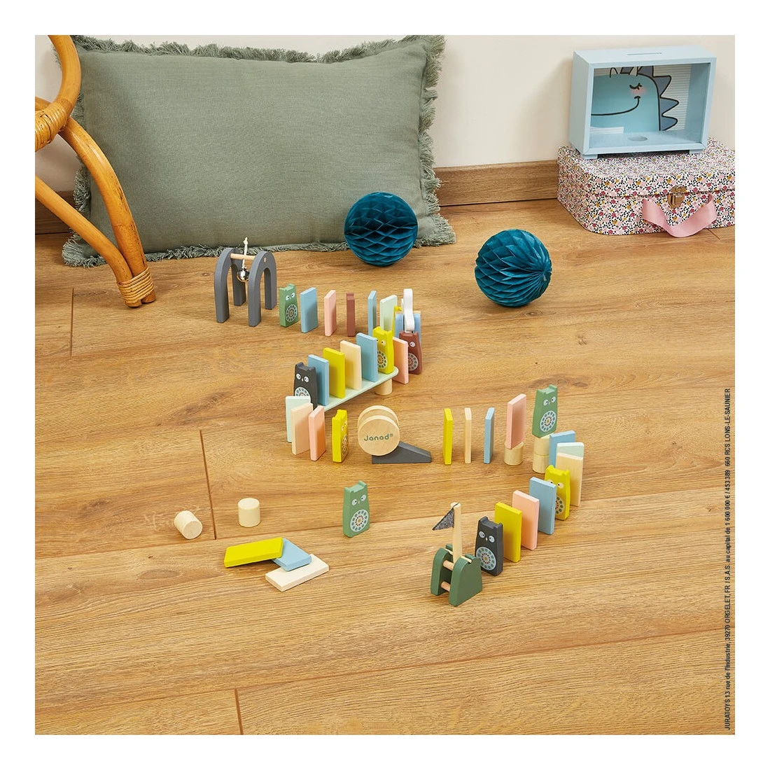 Les dominos sont un jeu classique et indémodable. Découvrez le jeu de dominos Sweet Cocoon : composé de 100 pièces en bois et avec ses couleurs tendances, ce jeu va permettre à votre enfant dès 3 ans de créer des parcours semés d’obstacles et de développer son imagination.