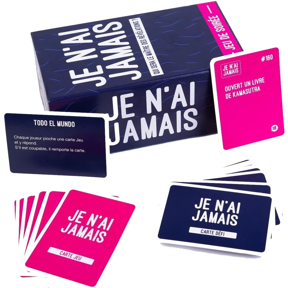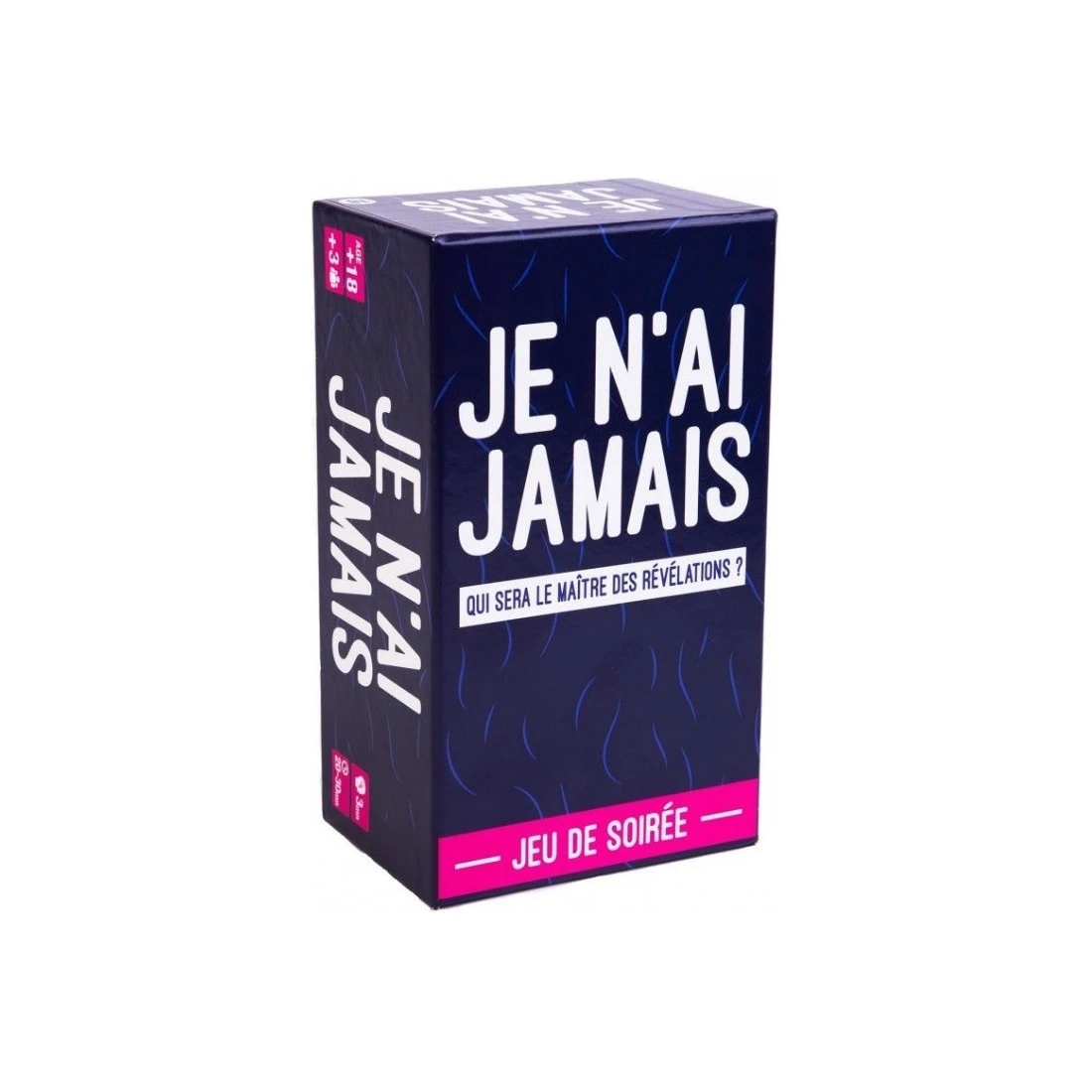 Je n’ai jamais te donne l’opportunité de connaître les plus gros secrets de tes amis et de dévoiler leur « Mur de la Honte » ! Chacun son tour, les joueurs tirent des cartes défi qui vont leur faire jouer des cartes Je n’ai jamais. Coupable ? Innocent ? Quel sera le sort de tes amis ?