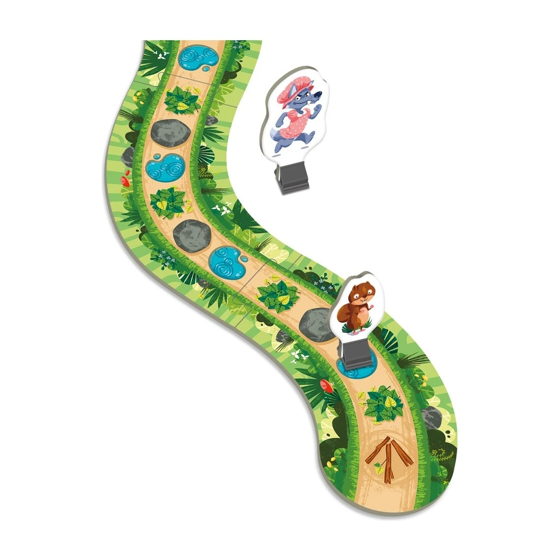 Jeu de parcours dans lequel chaque joueur joue le rôle d’un animal de la forêt auquel différentes lettres de l’alphabet sont associées. Les joueurs doivent reconnaitre ou nommer des lettres pour que leur personnage arrive en premier à la cabane du Petit Chaperon rouge.