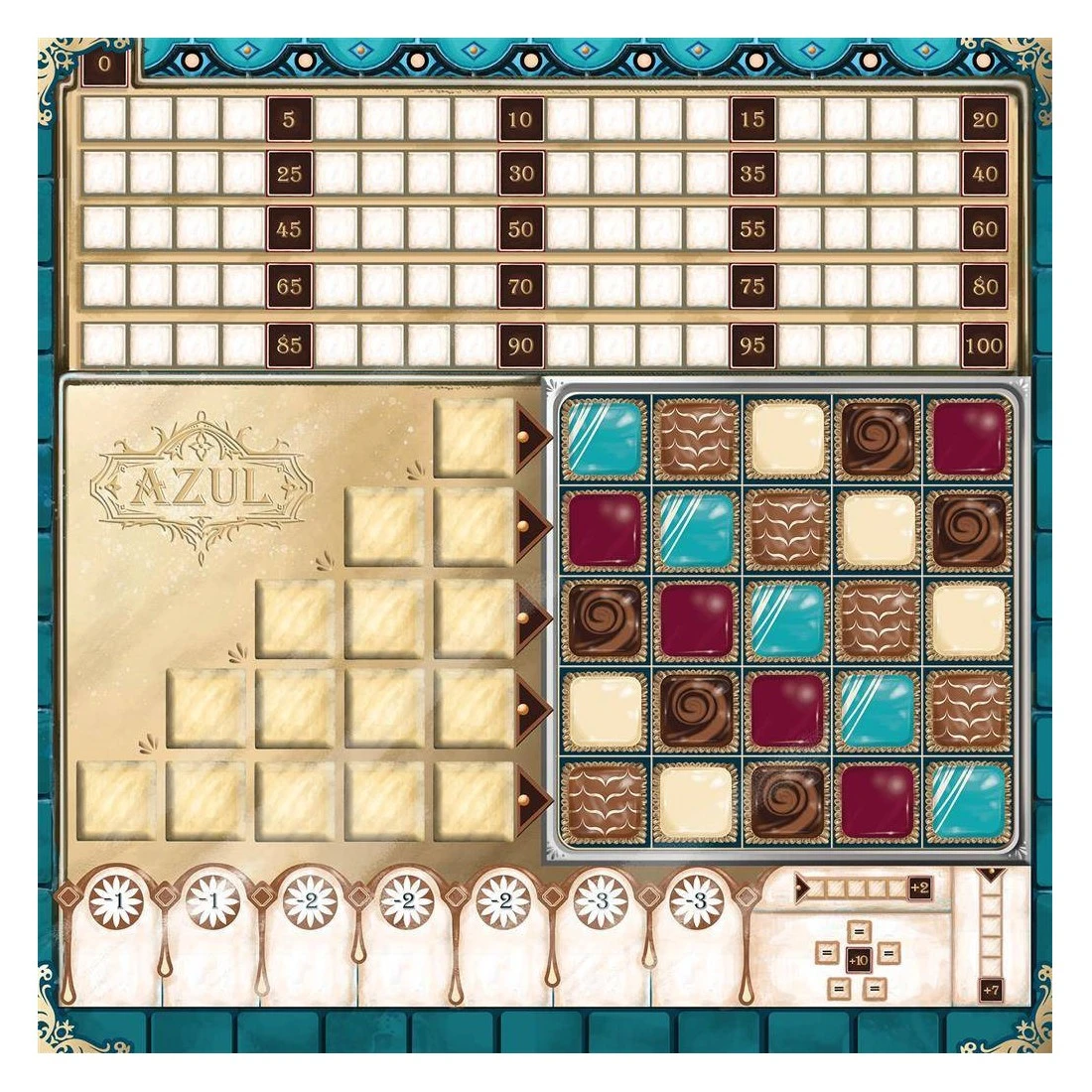 Grâce à son matériel aussi beau qu’agréable à manipuler et à sa mécanique simple mais riche, Azul a tout pour séduire les joueurs novices comme les plus aguerris. Azul Maître Chocolatier mêle hasard et stratégie et vous invite à devenir le meilleur artisan chocolatier.