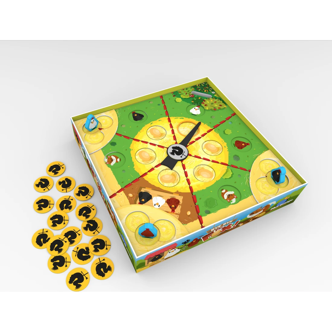 Puis tournez la girouette, si la flèche indique un oeuf et une poule, remplissez le nid, mais attention si la flèche indique un renardeau, il vole l’oeuf !