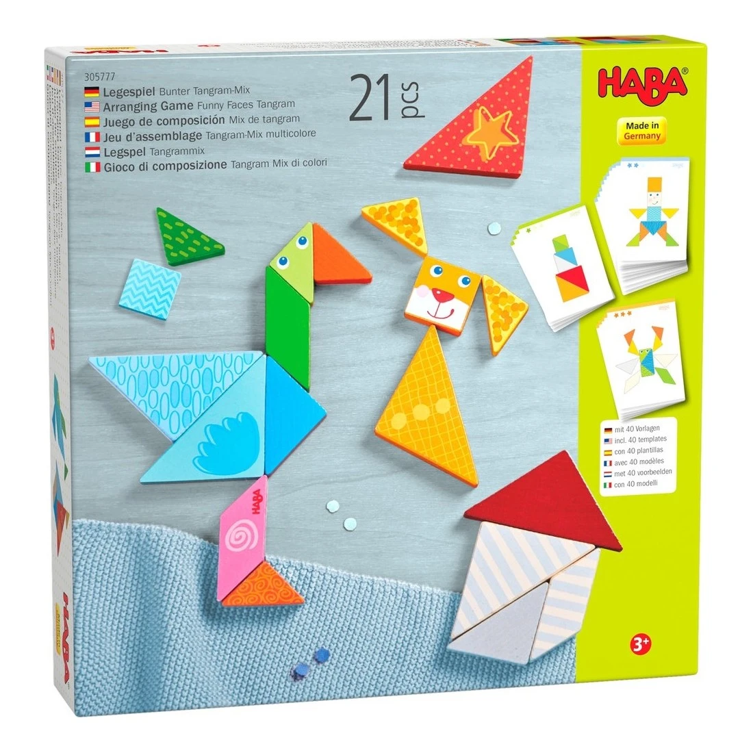Découvrez le Jeu d’assemblage Tangram-Mix multicolore de Haba pour les enfants à partir de 3 ans.