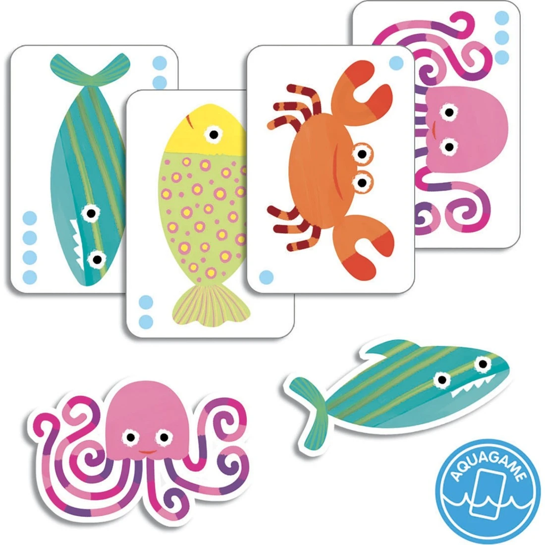 Chaque joueur a son paquet de cartes dans les mains, face cachée. Les 2 joueurs retournent en même temps la première carte de leur jeu. La carte la plus forte (de 5 bulles à 1 bulle) remporte le pli. Le gagnant les place sous son paquet de cartes.Lorsqu’il y a bataille, il faut au plus vite, « repêcher » le poisson qui fait l’objet de la bataille. Le premier joueur à l’attraper remporte le pli et remet le poisson dans l’eau.