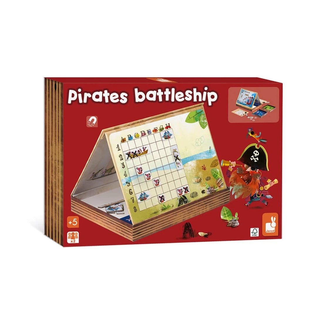 A l’abordage pirates ! Jouez à la mythique bataille navale avec vos enfants pour des moments pleins de suspense ! Revisitée par Janod, elle prend une toute autre dimension ! Les Pirates sont, cette fois, de la partie avec une fonction magnétique ! Soyez le plus malin et coulez tous les navires des adversaires en premier !