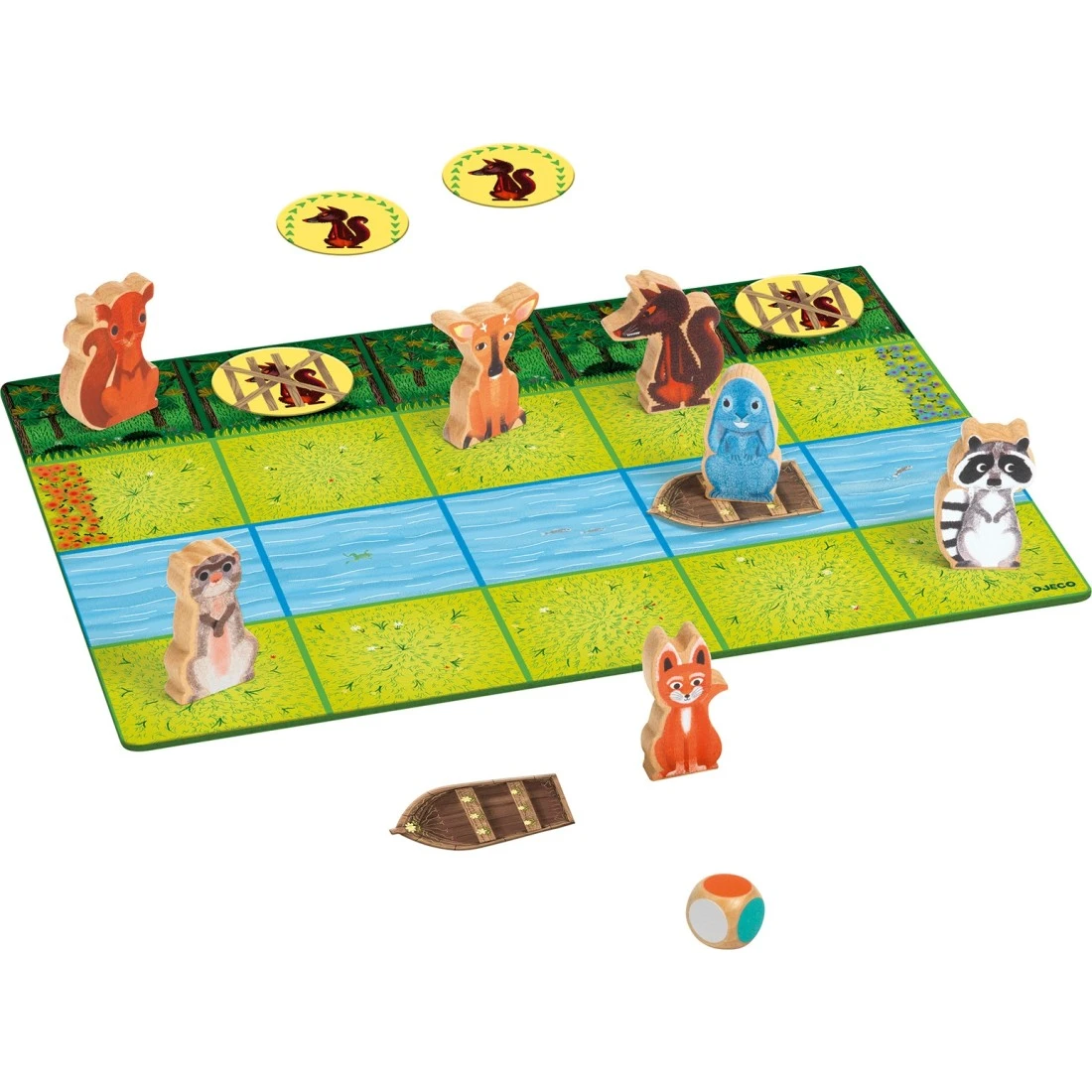 Contenu : 1 plateau, 2 barques, 1 dé, 1 pion loup, 6 animaux, 1 règle du jeu