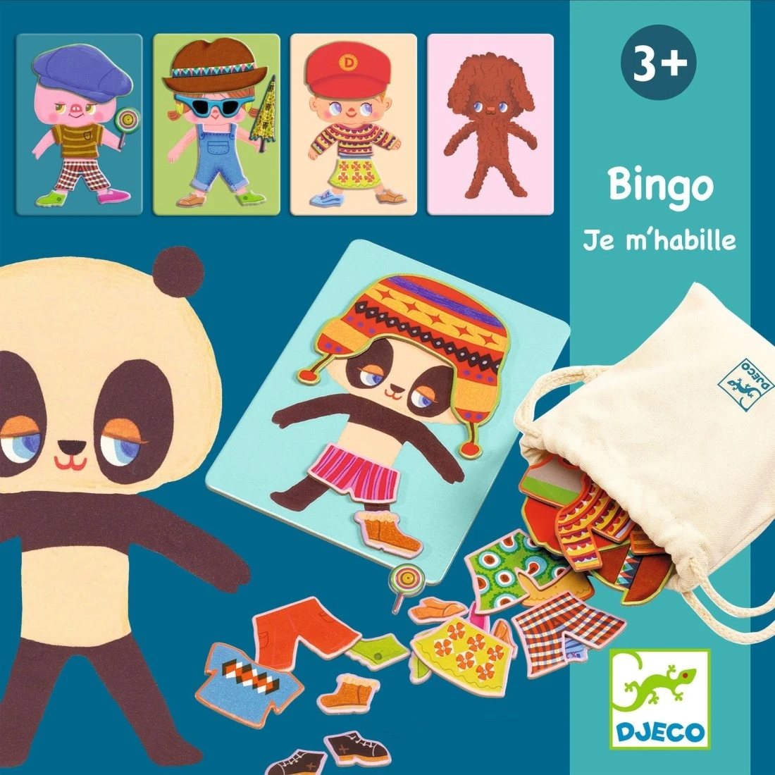 Bingo Je m’habille est un jeu éducatif, dans lequel l’enfant pioche un vêtement dans le sac et le pose sur sa planche.Un jeu idéal pour appréhender la notion des saisons grâce aux vêtements.
