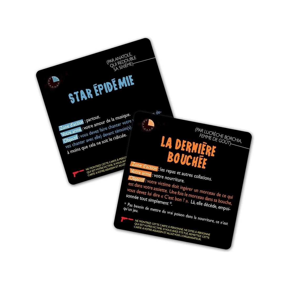 Killer Party, c’est une personne à traquer, mais toutes les autres qui peuvent vous poignarder… Contenu : 53 cartes « Mission » 4 cartes « Règle »