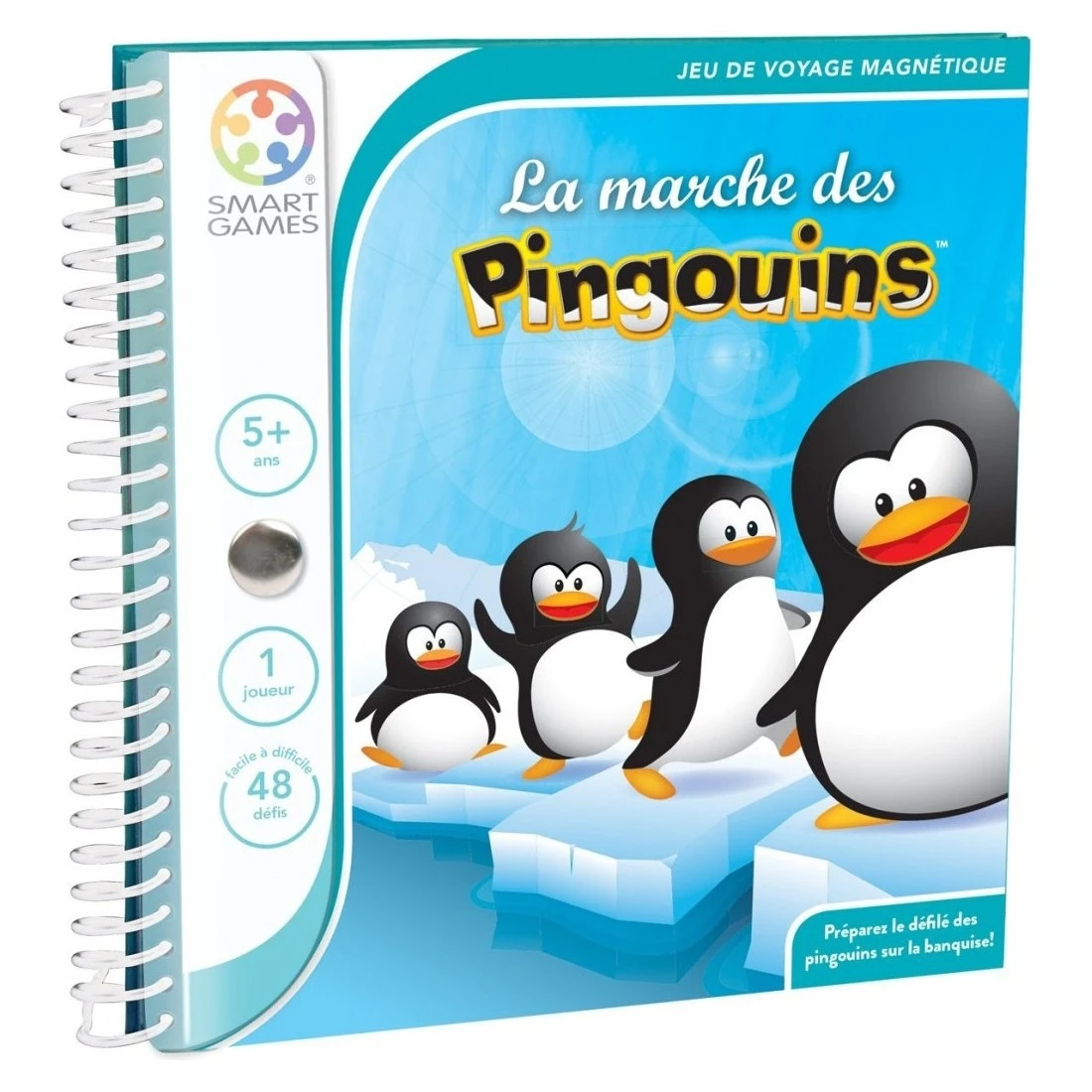 Ce jeu de voyage magnétique propose 48 défis et des heures d’amusement. La marche des Pingouins est un jeu de réflexion particulièrement adapté aux enfants.
