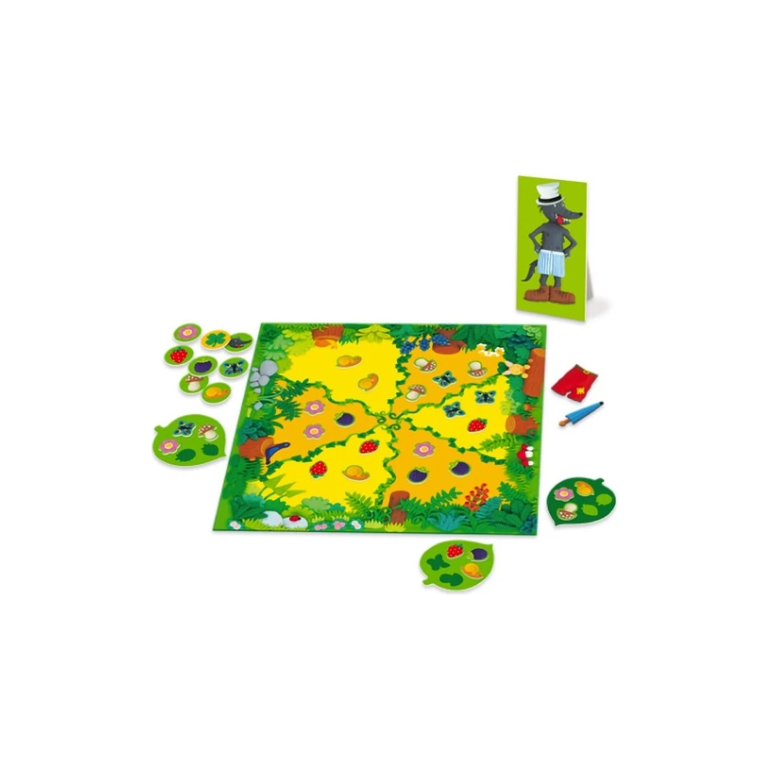 Le jeu du Loup est un jeu de société éducatif sur le thème de « Promenons-nous dans les bois ». Une règle de jeu très simple et conviviale, qui propose aux enfants 2 modes de jeux différents : tous ensemble contre le loup ou chacun pour soi. Vite, vite ! Il faut faire sa cueillette avant que le loup ne soit complètement habillé, sinon… il vous mangera !