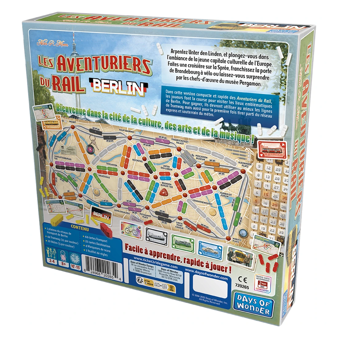 Dans cette version compacte et rapide des Aventuriers du Rail, les joueurs font la course pour visiter les lieux emblématiques de Berlin. Pour gagner, ils devront utiliser au mieux les lignes de Tramway mais aussi pour la première fois tirer parti du réseau express et souterrain du métro.