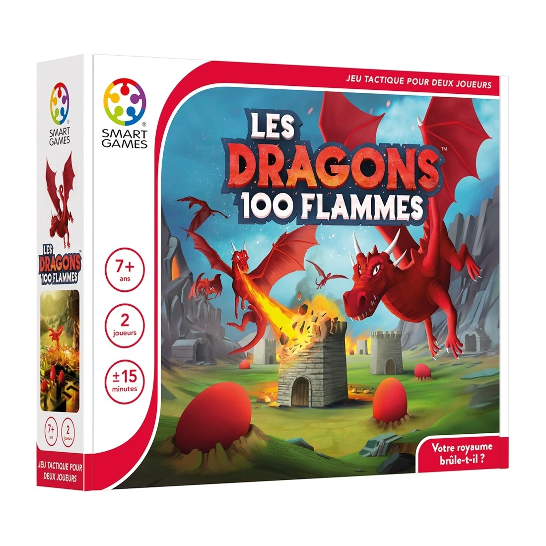 Mais attention ! Les dragons cracheurs de feu peuvent réduire les royaumes en cendres… mais si vous êtes malin, vous pouvez aussi vous servir du feu infernal du dragon contre votre adversaire.