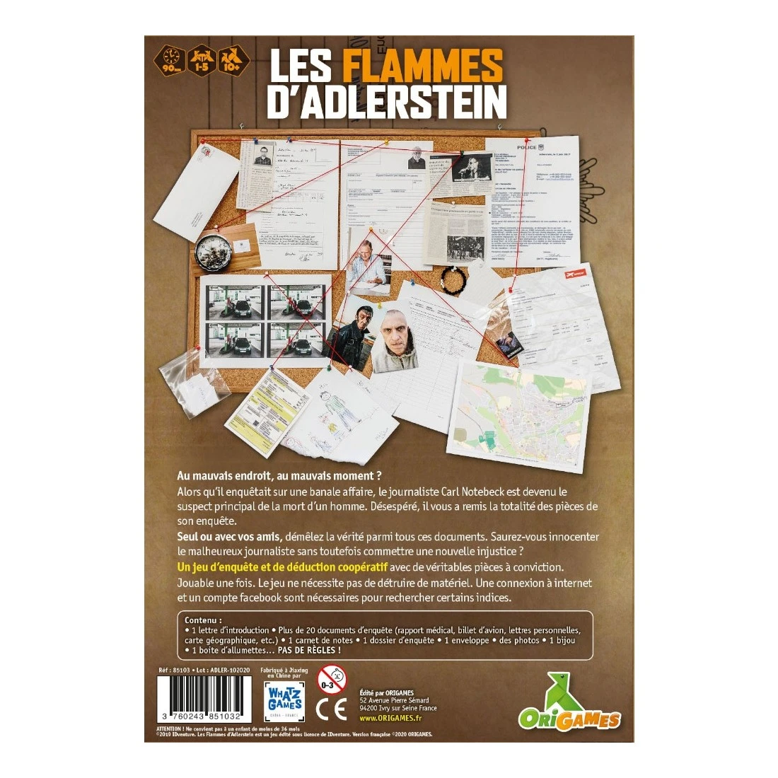Ici pas de règles de jeu ! Les Flammes d’Adlerstein vous propose d’élucider une véritable enquête. En ouvrant la boite, vous avez tous les éléments en main, et si vous souhaitez vous aider d’internet rien ne vous en empêche.