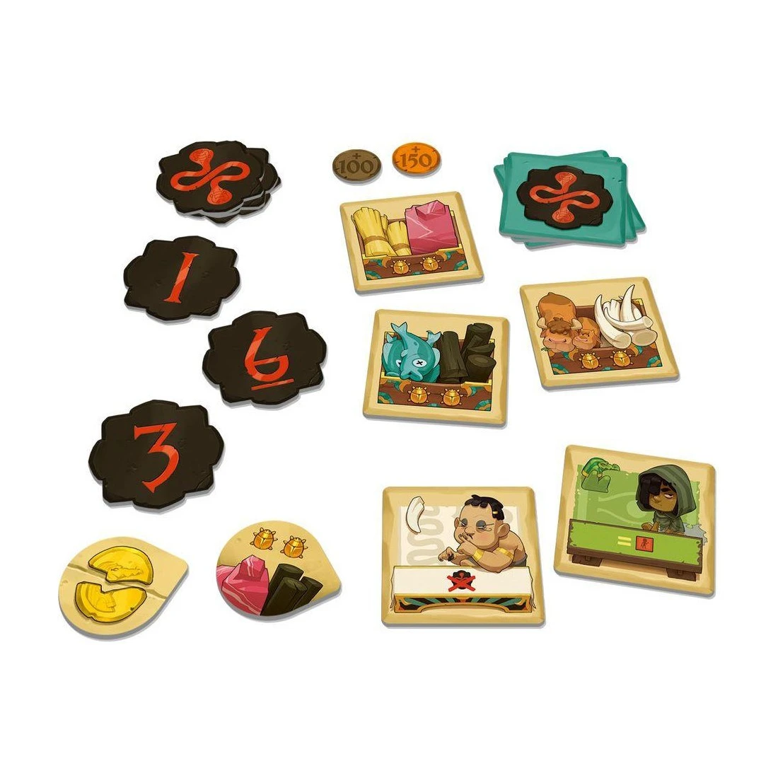 Un tout nouveau type de tuiles fait son apparition sur le marché de Sobek : les très convoités trésors du pharaon, source d’une grande richesse… et de corruption ! En plus de ce mécanisme inédit, des personnages et jetons Pirogue additionnels viendront encore enrichir votre expérience.
