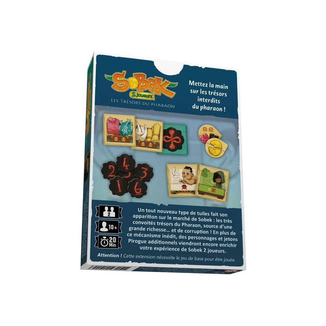 Sobek 2 joueur extension Pharaon est une extension qui offre de nouveaux choix intéressants et compromettants tout en gardant l’âme du jeu et sans le complexifier. On recommande cette extension à tous ceux qui veulent prolonger l’expérience Sobek 2 joueurs et qui sont curieux de voir jusqu’où ils seraient prêts à se mouiller pour l’emporter.