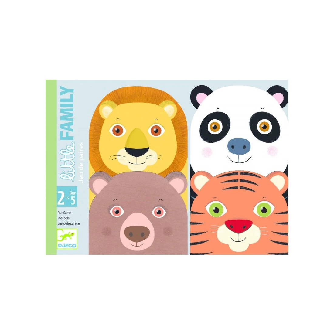 Le jeu de cartes Little Family de la marque Djeco est un jeu de paires pensé pour les enfants de 2,5 ans à 5 ans. Les petits animaux cherchent leur copain, aidez-les à les retrouver. Les cartes sont mélangées et chaque joueur obtient 4 cartes qu’il dispose devant lui, faces visibles. Le reste des cartes forme la pioche. Chacun son tour, le joueur pioche une carte et la pose devant lui. Il regarde alors toutes les cartes posées sur la table (à commencer par les siennes puis celles des autres joueurs) et essaie de former une paire : soit en utilisant ses propres cartes, soit l’une de ses cartes avec la carte d’un autre joueur. La partie prend fin dès que toutes les paires ont été constituées et le gagnant est celui qui en a le plus. Les jeux de la gamme Little de Djeco sont une valeur sûre, adaptés pour les jeunes enfants de 2,5 ans à 5 ans. Et même plus pour pouvoir jouer avec son petit frère ou sa petite sœur. Une belle idée pour jouer ensemble, et apprendre tout en s’amusant.