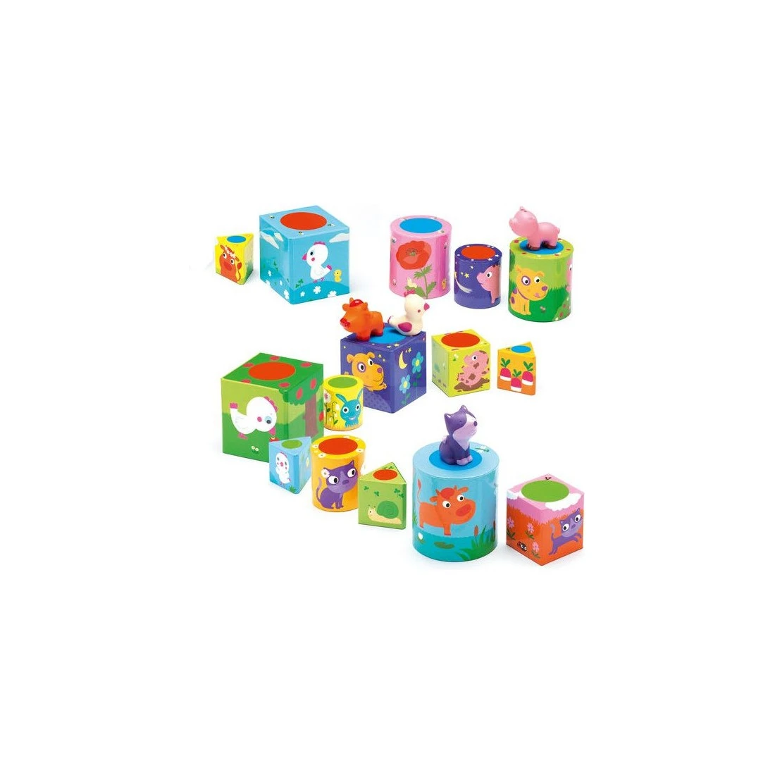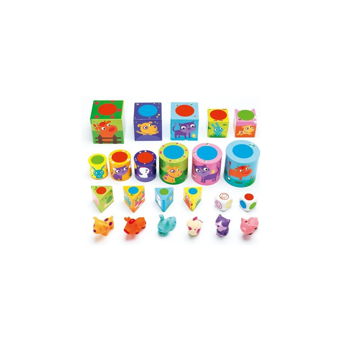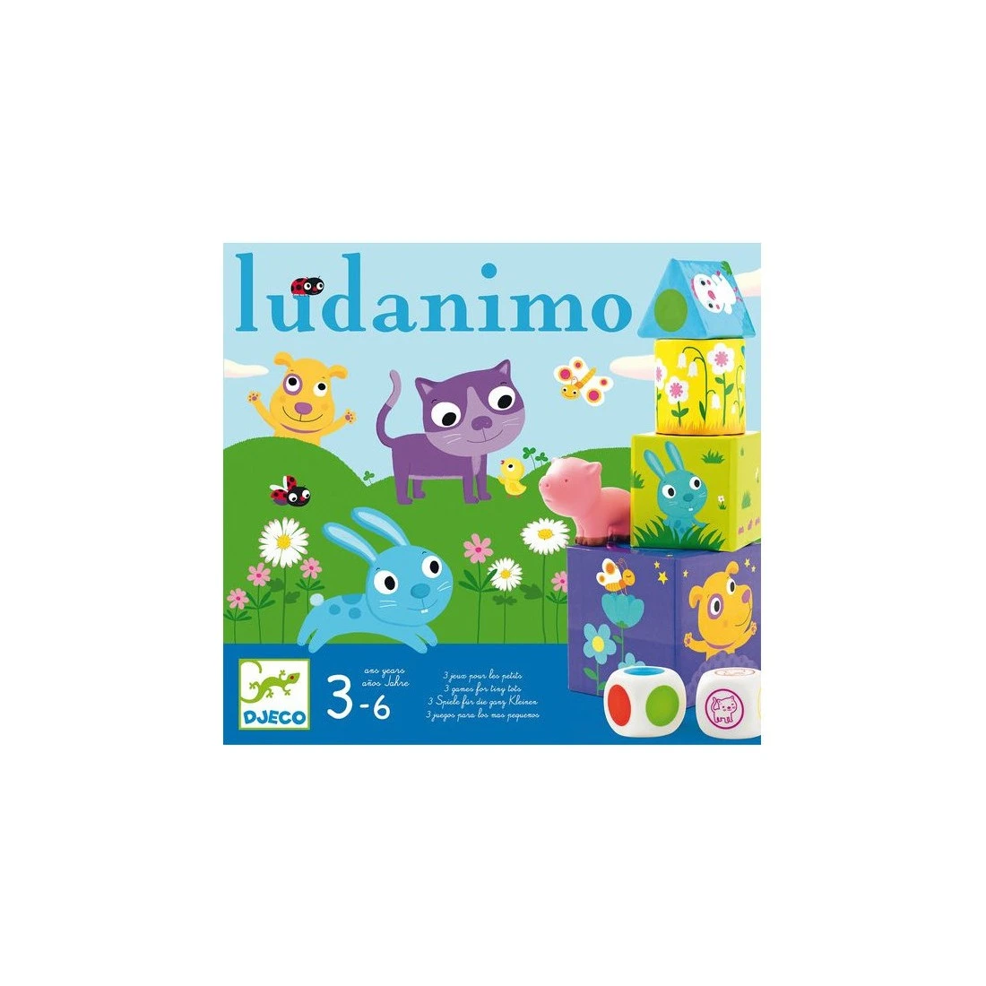 Djeco vous présente Ludanimo se composant de 3 jeux complets et évolutifs pour les tout petits. Jeu d’équilibre, jeu de mémo et jeu de parcours pour jouer seul ou à plusieurs en suivant les règles (ou pas ) Le coffret se compose de 15 cubes de différentes formes et tailles, 6 animaux (chat, chien, cochon, lapin, vache et poule), 3 dés et une règle du jeu. Après avoir jouer votre enfant se fera une joie de détourner ce jeu à sa guise ! De 1 à 4 joueurs Nombre de joueurs 2 joueurs et plus Dès 3 ans