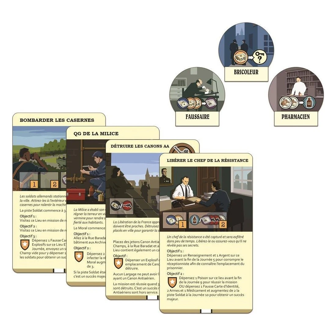 Engagez-vous un peu plus en profondeur dans cette guerre de résistance !L’extension propose 4 missions très difficiles (3 étoiles), et de nouvelles tuiles Action Local et Ressources.