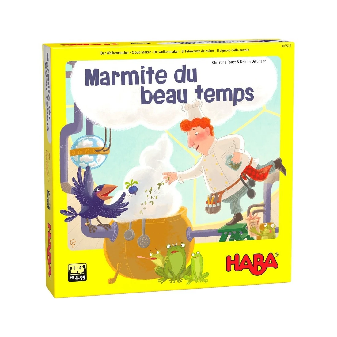 Tous les jours, le marmiton de la météo et la corneille concoctent ensemble la météo. Mais lorsque le marmiton s’absente, la corneille doit se débrouiller toute seule et a besoin de votre aide ! Un peu de chance au dé et une bonne mémoire vous permettront de réunir les ingrédients nécessaires à vos trois recettes et ainsi de remplir la marmite.