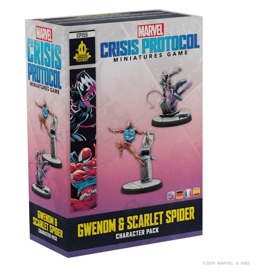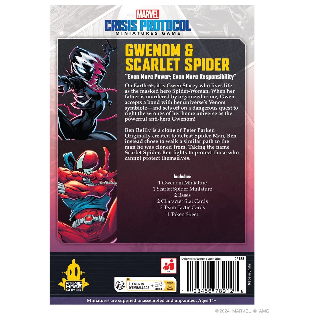 Deux versions alternatives de personnages importants font leur entrée dans Marvel : Crisis Protocol dans ce nouveau pack ! Sur la Terre-616, Gwen Stacy est morte. Mais sur la Terre-65, c’est Peter Parker qui est mort et Gwen Stacy qui vit une vie de héros masqué. Acceptant de se lier au symbiote Venom et au pouvoir qu’il lui offre, elle se lance dans une quête pour redresser les torts de son univers d’origine.